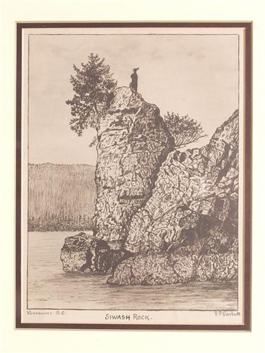 Description: Siwash Rock with Indian Maiden. Signed F. B. Carbutt.