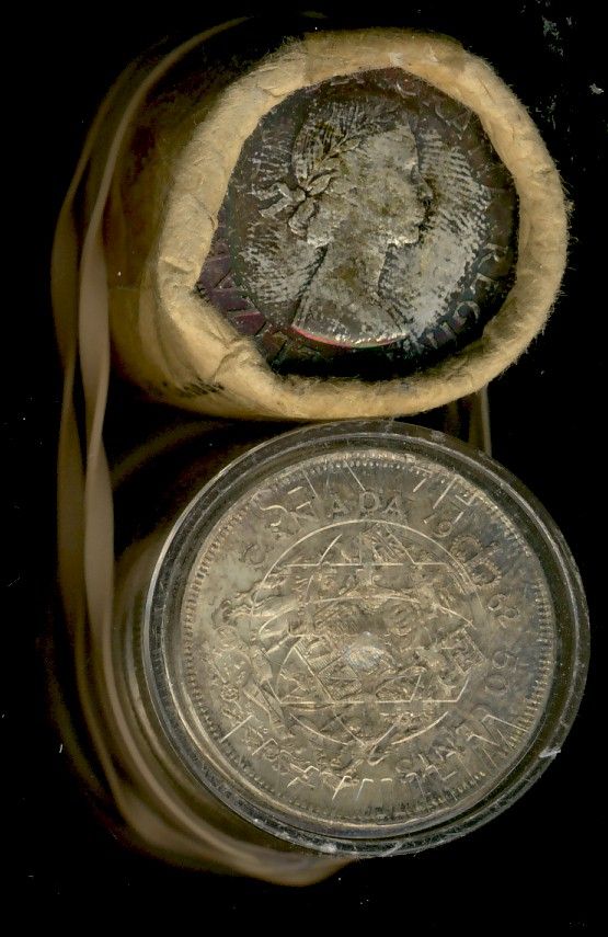 Canadian BU Rolls; includes 1962 & 1963 50¢. Lot of 2 BU rolls. Some with gem tones.