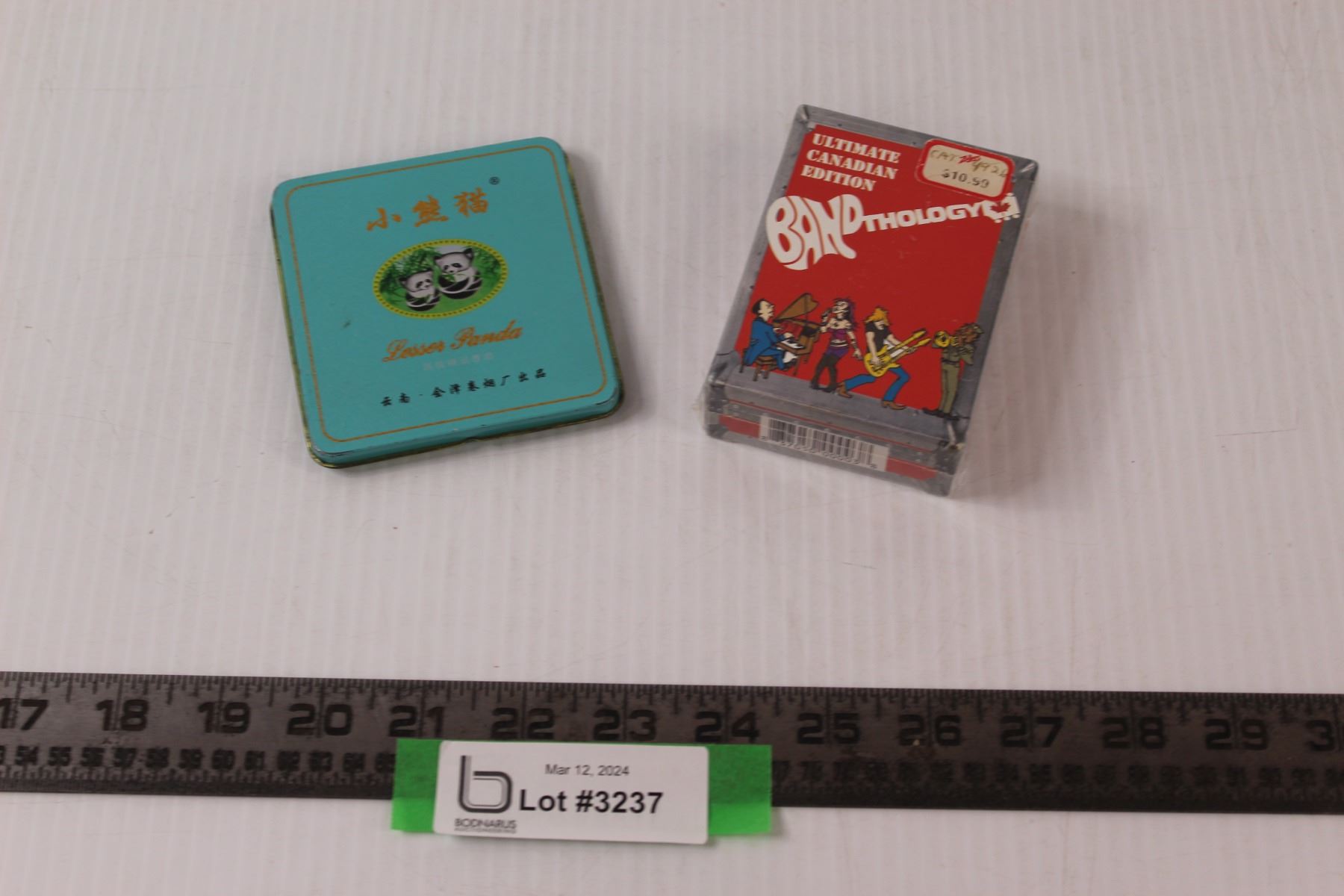 Canadian "Bandthology" Music Trivia Card Set (New In Package) & Vintage Chinese "Lesser Panda" Cigarette Tin