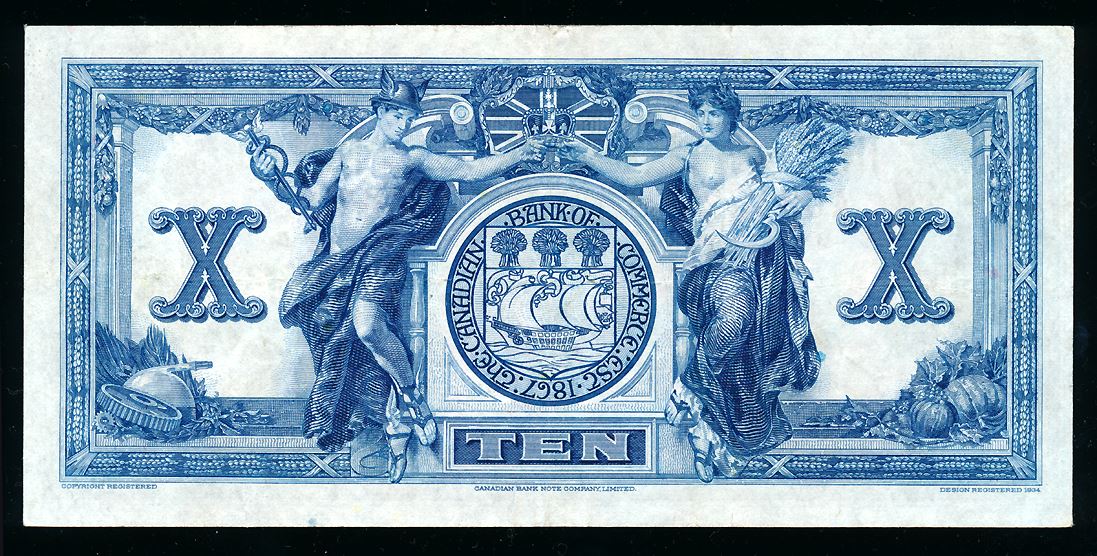 Canadian Bank of Commerce, Ten Dollars, 1935, Arscott signature right, Type 2, CH#75-18-08B, Clean VF-EF; it looks better