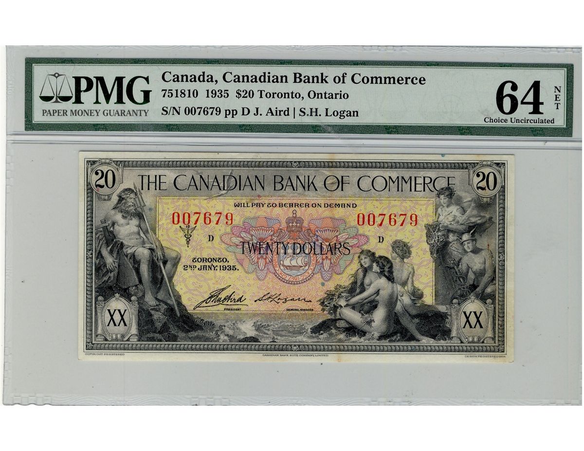 Canadian Bank of Commerce; 1935 $20 #007679 CH-75-18-10 PMG CH UNC64 Net. Bright issue with minor orange tint line.