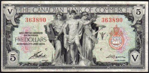 The Canadian Bank of Commerce 1935 Five Dollars, CH 75-18-02, serial number 363890 C, EF