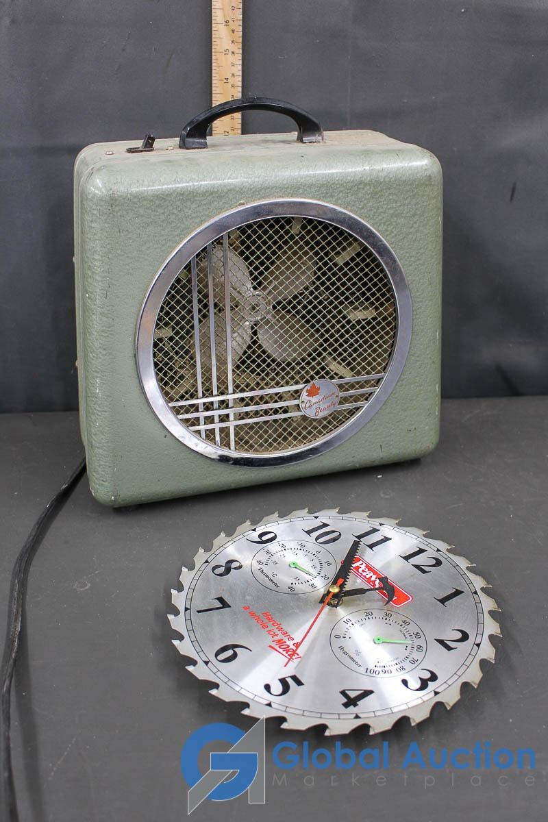 Canadian Beauty Heater and Fan (Working) and Peavey Mart Clock