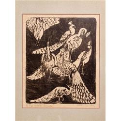By Katherine Day 1`889-1976 White Peacocks Inscribed and Signed in Pencil