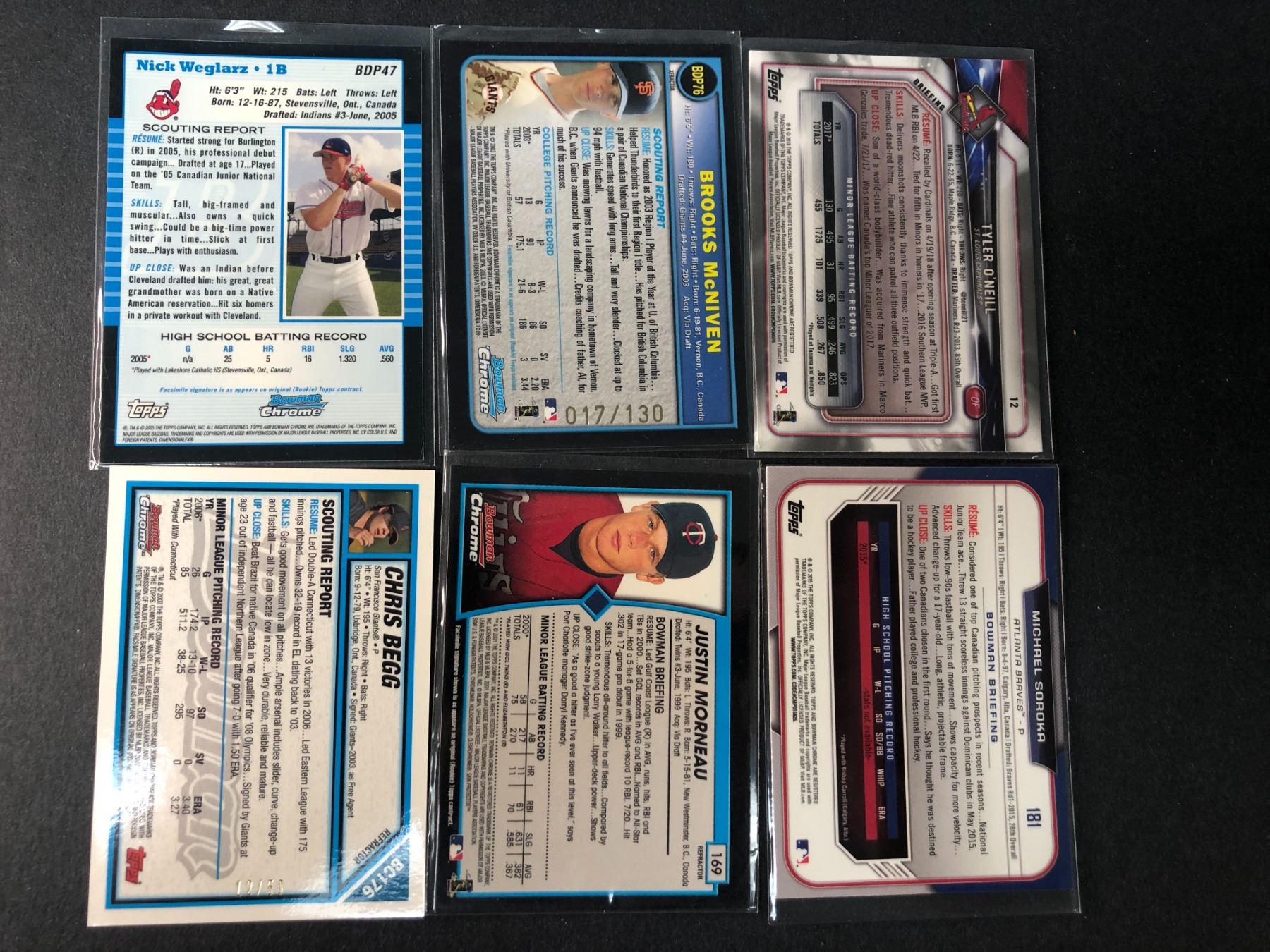 Lot of 6 Canadian born rookie cards and refractors of baseball players