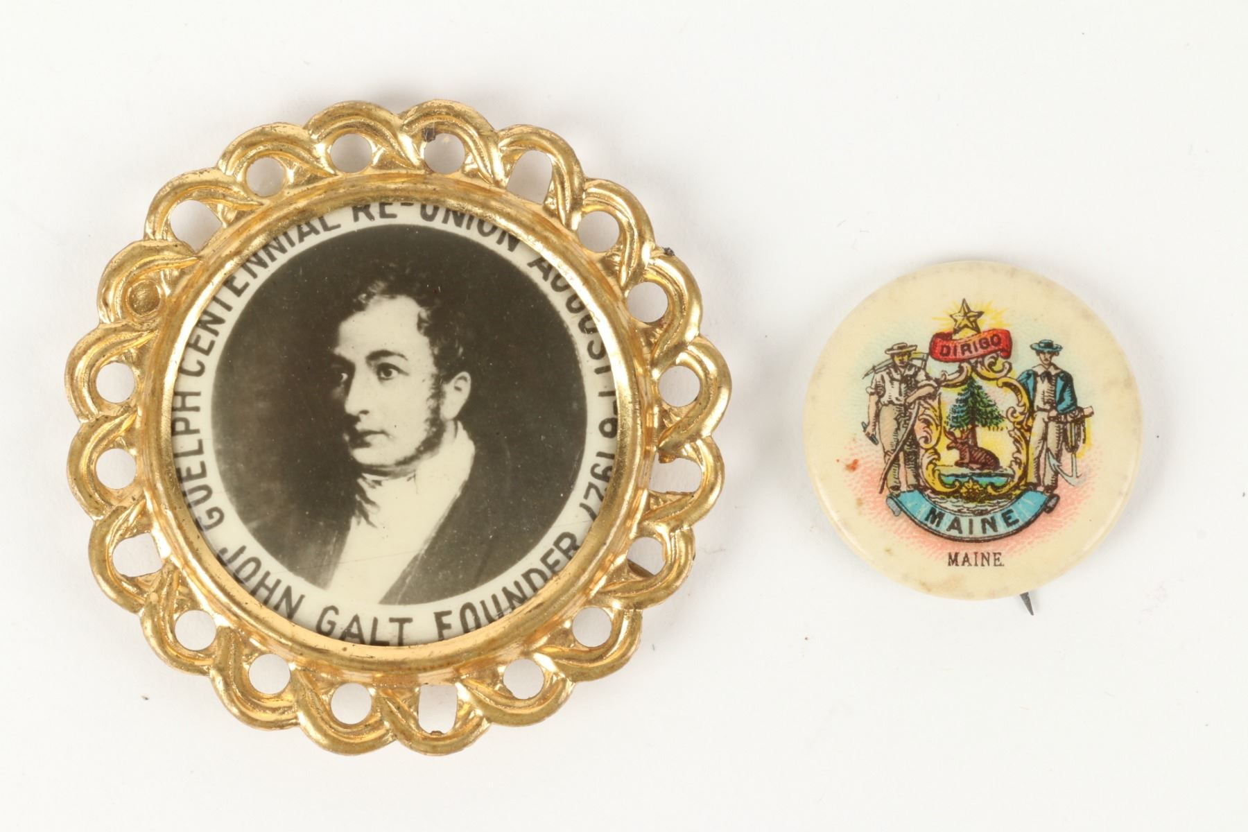 Ten (10) items. Rock Garden, Hamilton, Barrie June 30th & July 1st, 1913, CPR Hotel, Banff, Alberta, Hamilton Summer Carnival, City Hall, Toronto, and Sweet Caporal "Maine", Remember the Maine boat, 1901 Western Manitoba Big Fair", Eaton's Toyland Santa Claus, Guelph Centennial Reunion - John Galt. .75" to 1 3/8". Minor fading. Intact. $200-300.