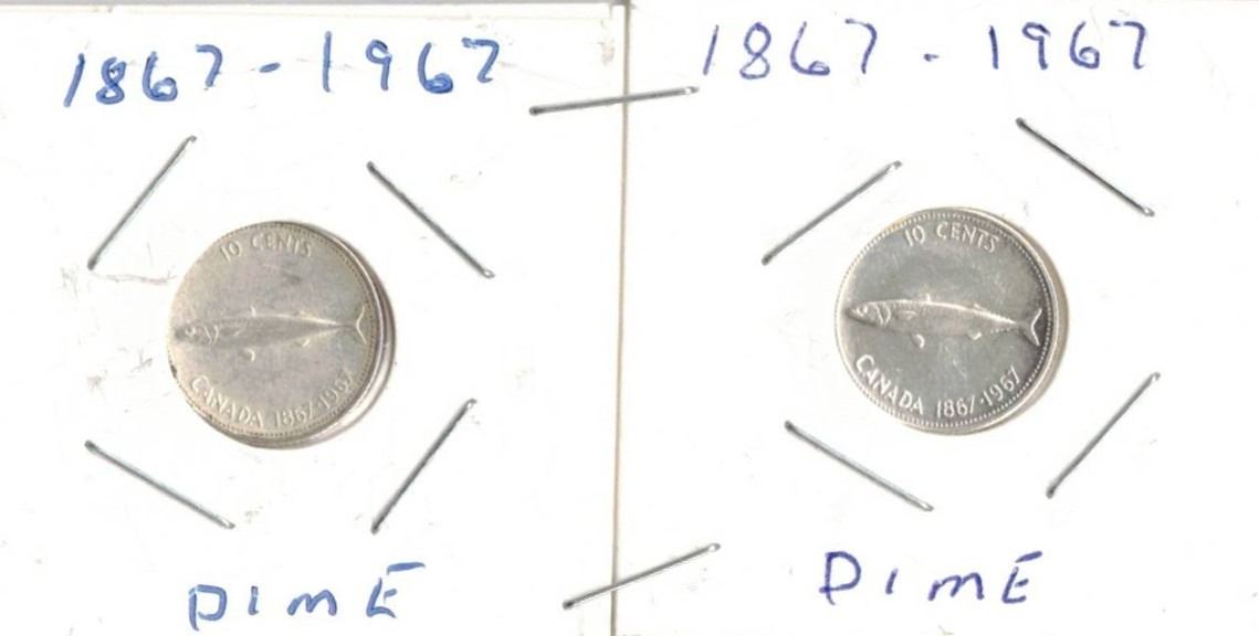 Canadian Centennial TWO Dimes, Fish