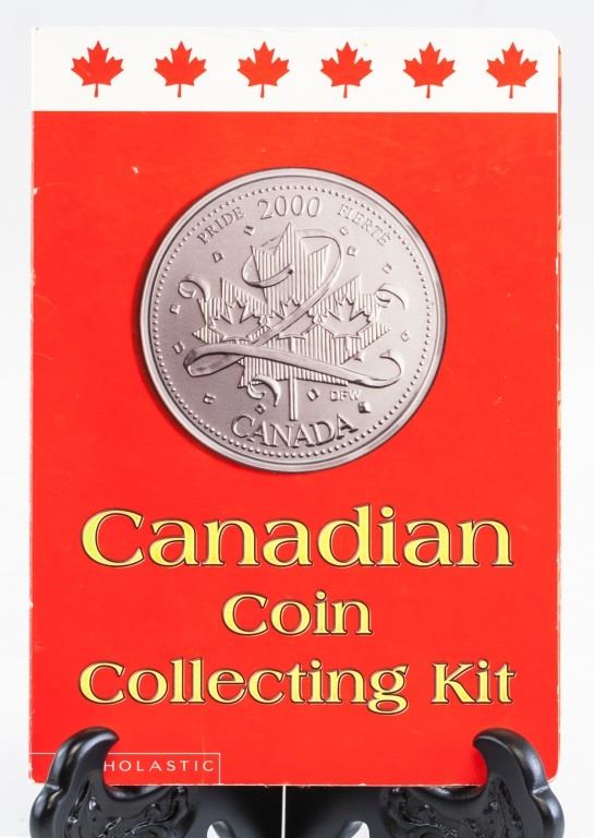 Canadian coin collecting kit. Published by Scholastic. One coin missing. 23 x 16 cm.