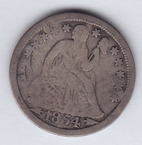 * PETER A. MURDOCH, * (in circle) and C.W. (in center) on planed rev. of U.S. dime, 1854 (M.I. 670, Brunk M 1002).