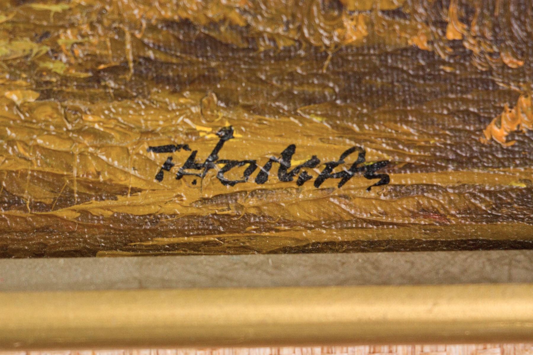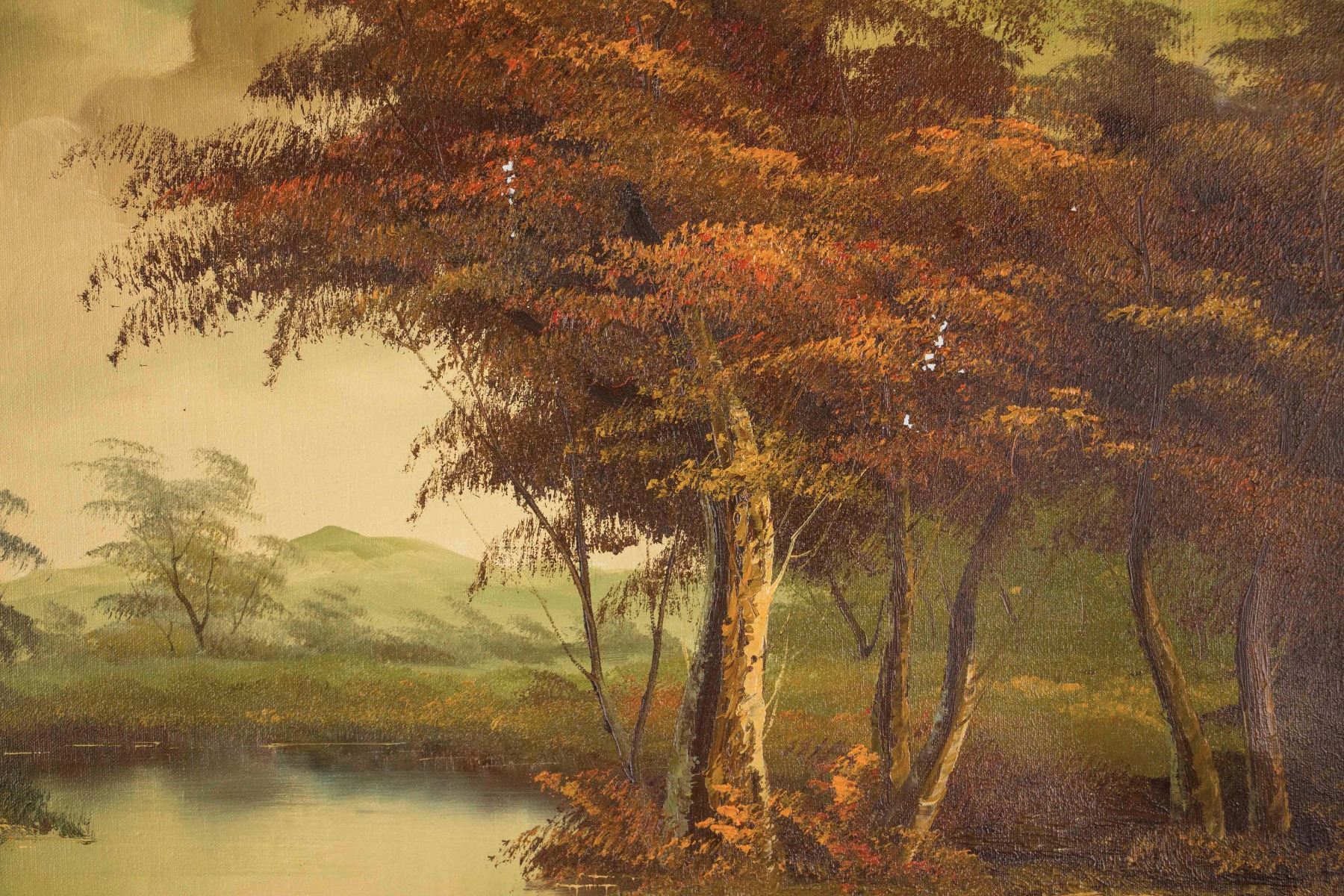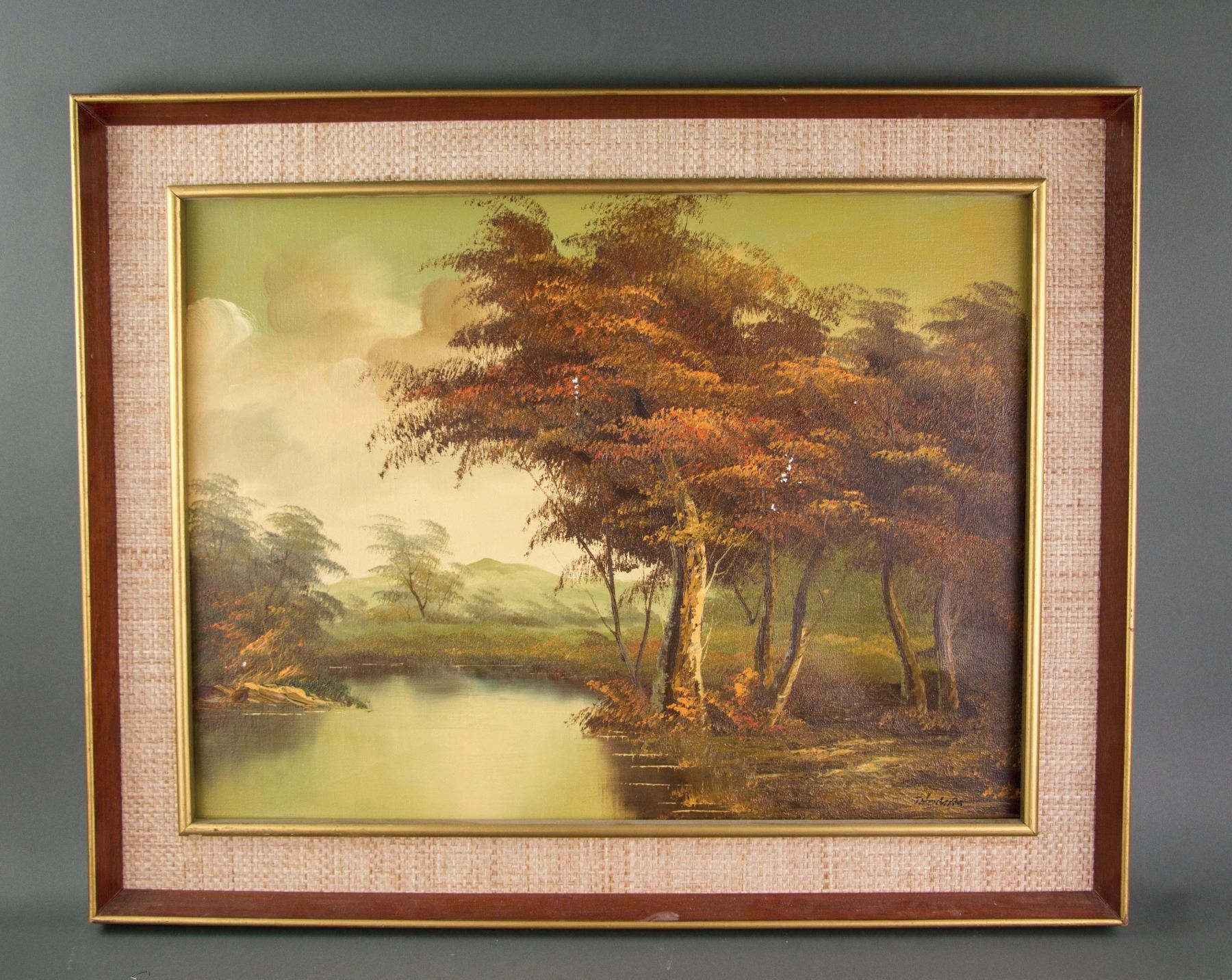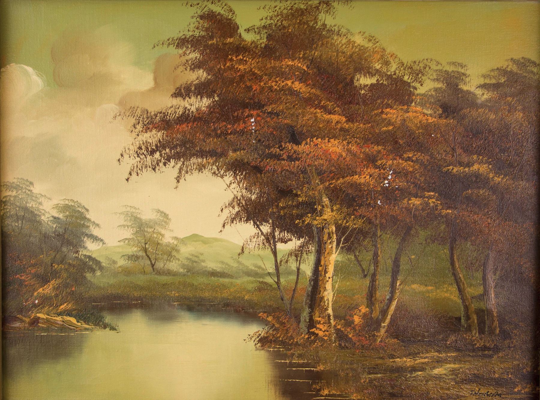 Painting of lake landscape; oil on canvas; framed; signed Thomas; Canadian artist; 18 inches x 24 inches