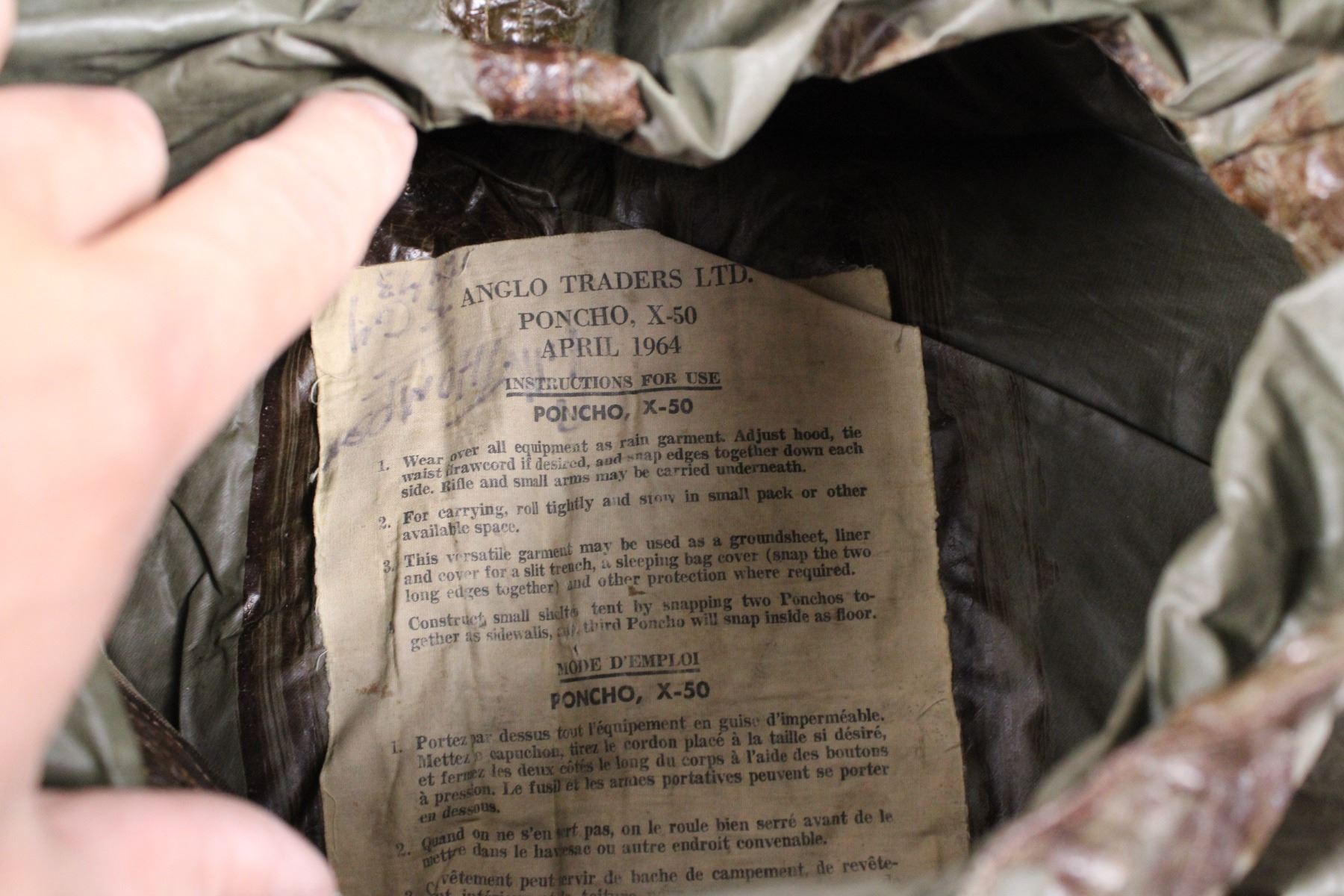 Canadian Forces Poncho/Rain jacket "Anglo Traders Poncho X50" April 1964