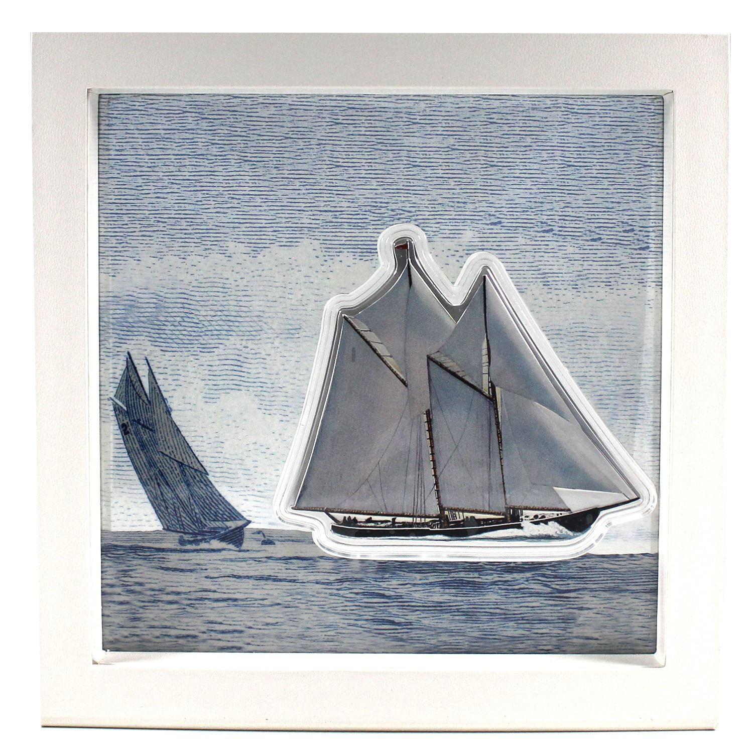 Canadian Heritage Mint Issue: 100 Gram Canada Coloured Bluenose Shaped .9999 Fine Silver in Capsule and Magic Window Holder. (TAX Exempt)