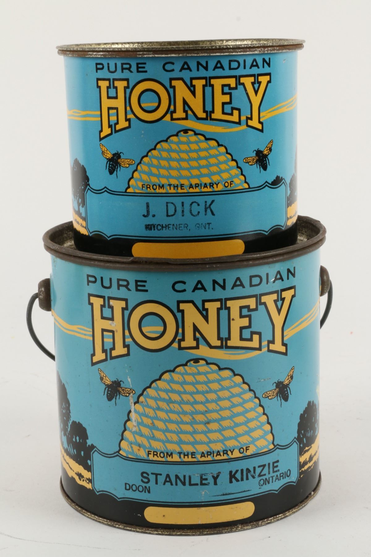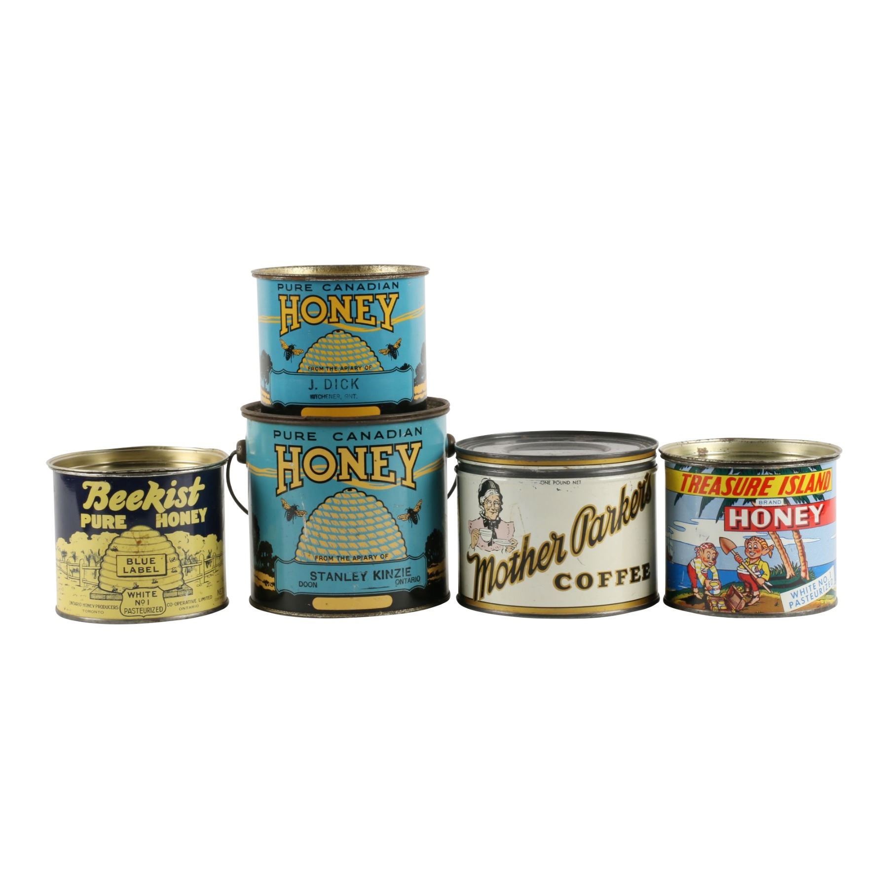 Five (5) pieces. Canadian. Tin litho.1lb, 2lb and 4lb sizes. $75-100.