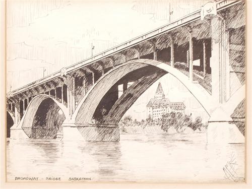 Description: Broadway Bridge Saskatoon, M. Petrie. Light Discolouration.