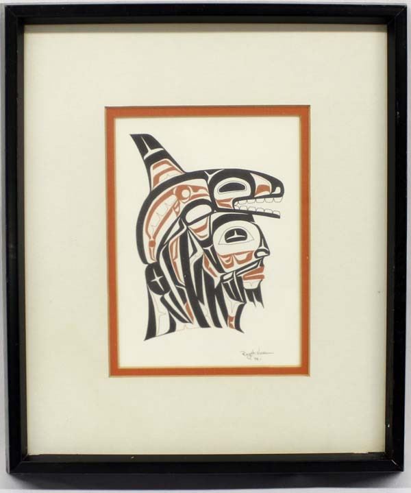 Native American Canadian Inuit Print by Roy Henry Vickers (Tsimshian, b. 1946), visual measures 6.5'' x 4.75''