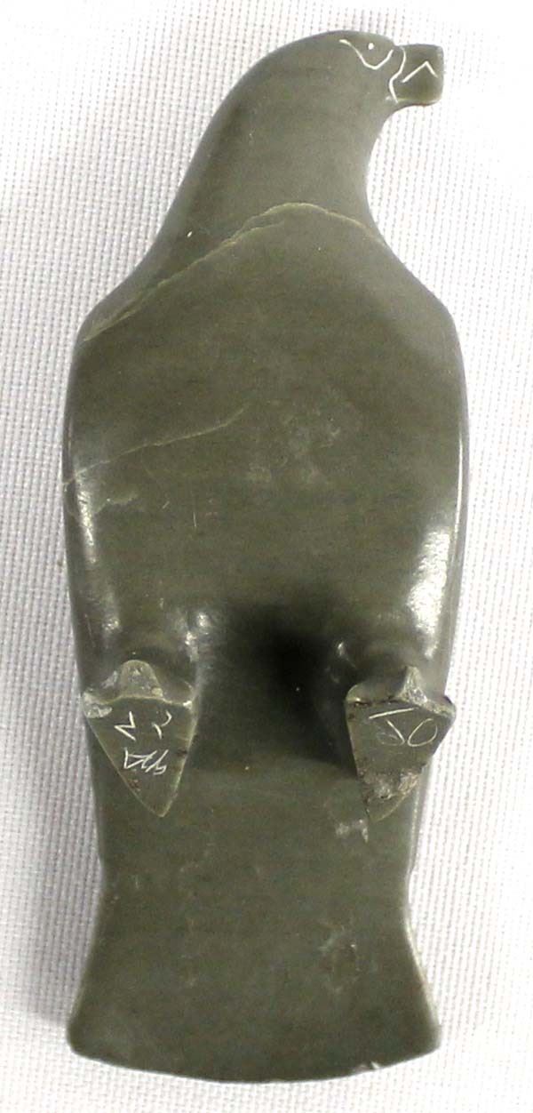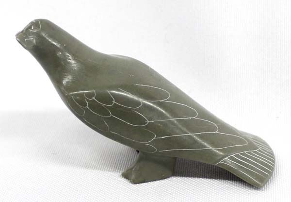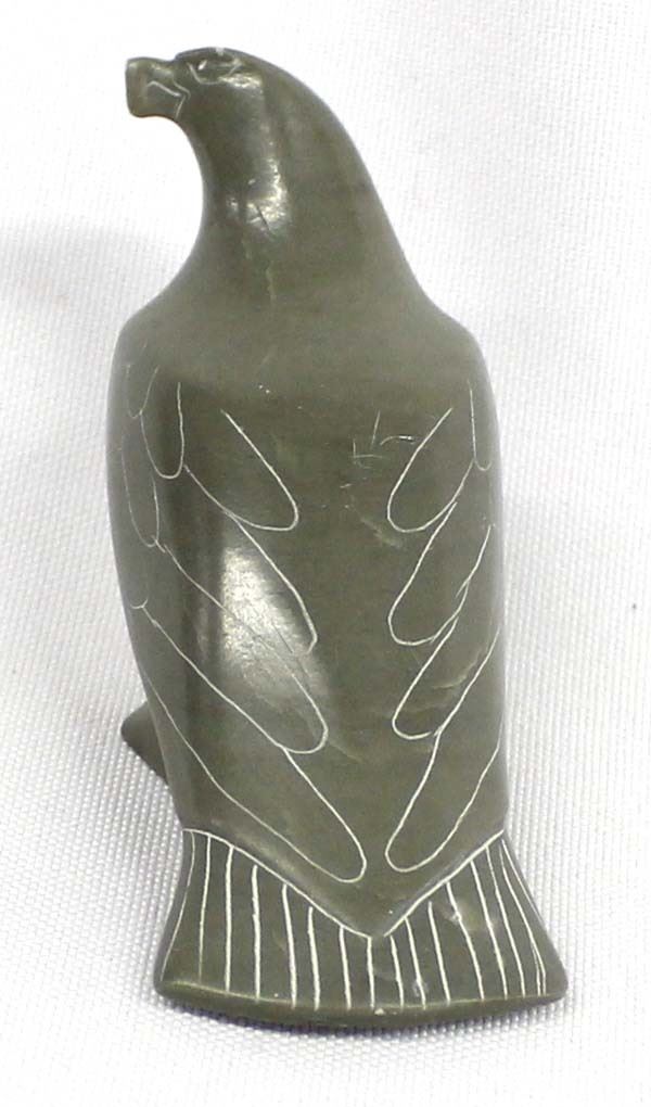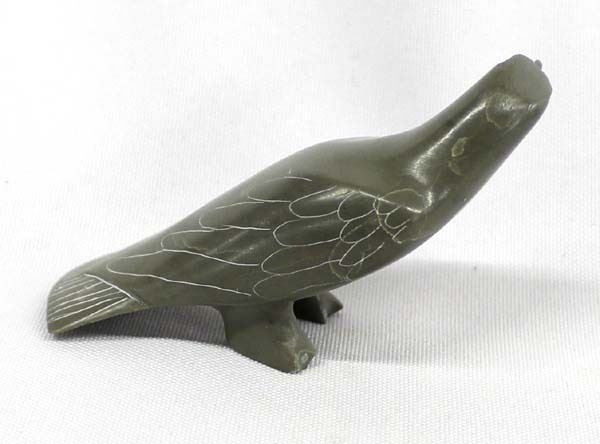 Native American Canadian Inuit Argilite Standing Eagle Carving by Josie Iqaluq (b.1960), measures 2''H x 3''L x 1.5''W, signed on the bottom