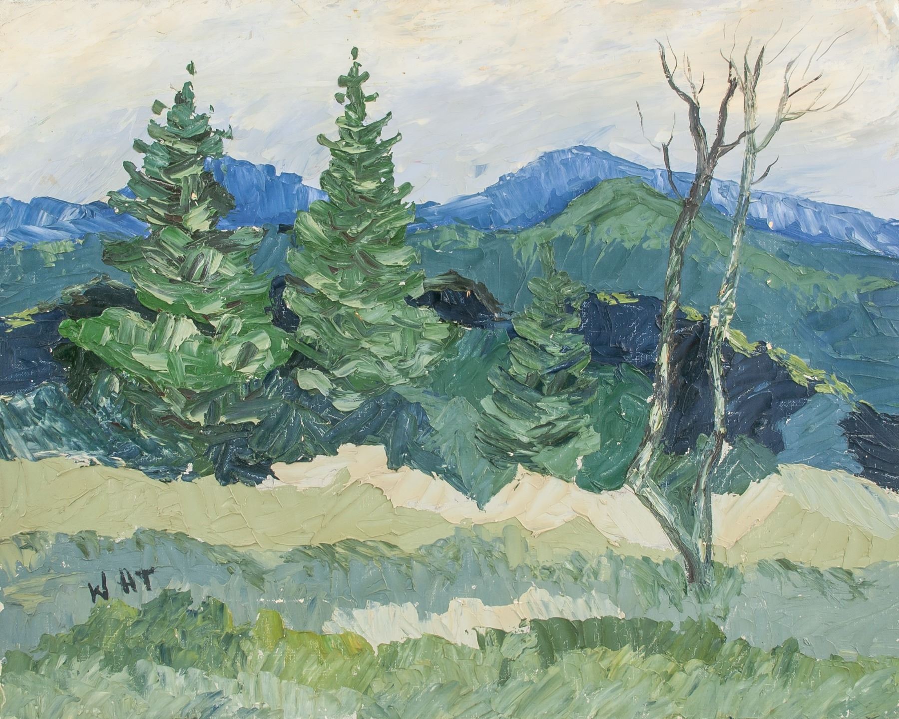 Oil on board. Featuring Canadian landscape scene of Laurentians. Signed WHT. 15.7 x 19.9 in. (40 x 50.5 cm)