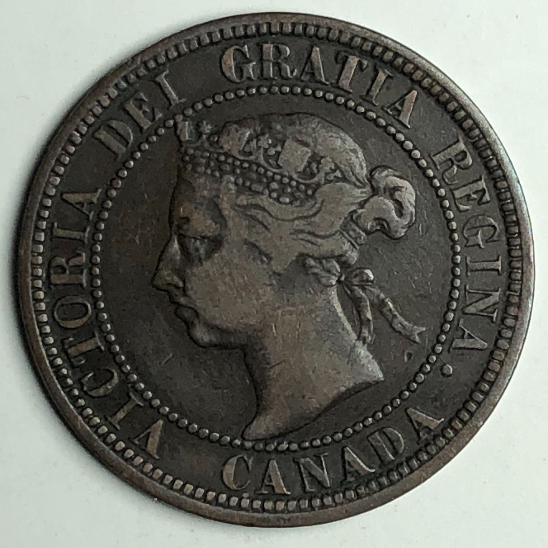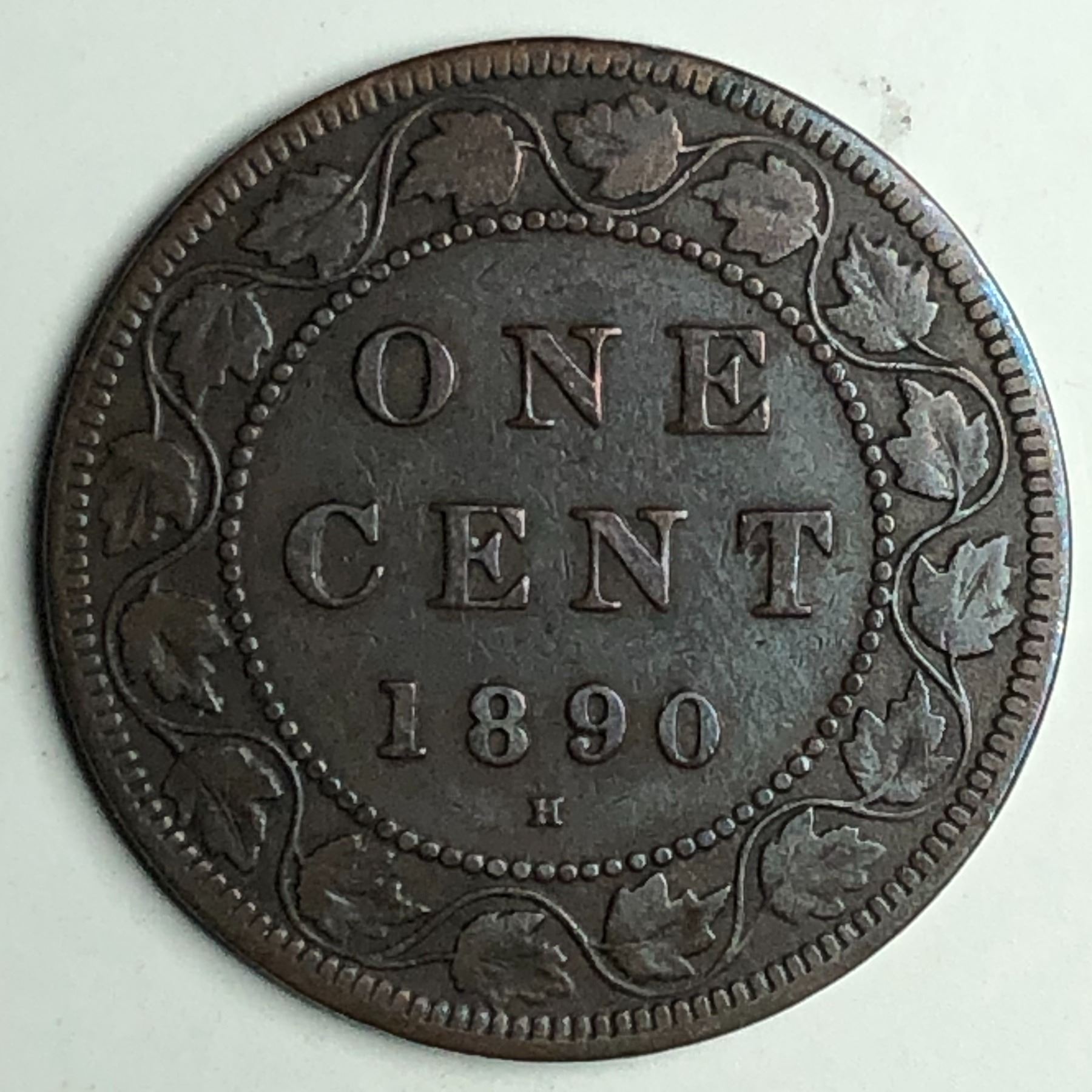 Canadian Large Cent 1890 Flying I in DIE F+