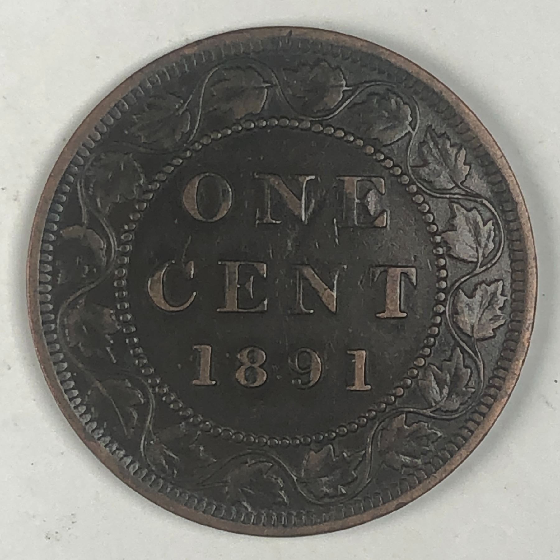Canadian Large Cent 1891 AU+ LDLL