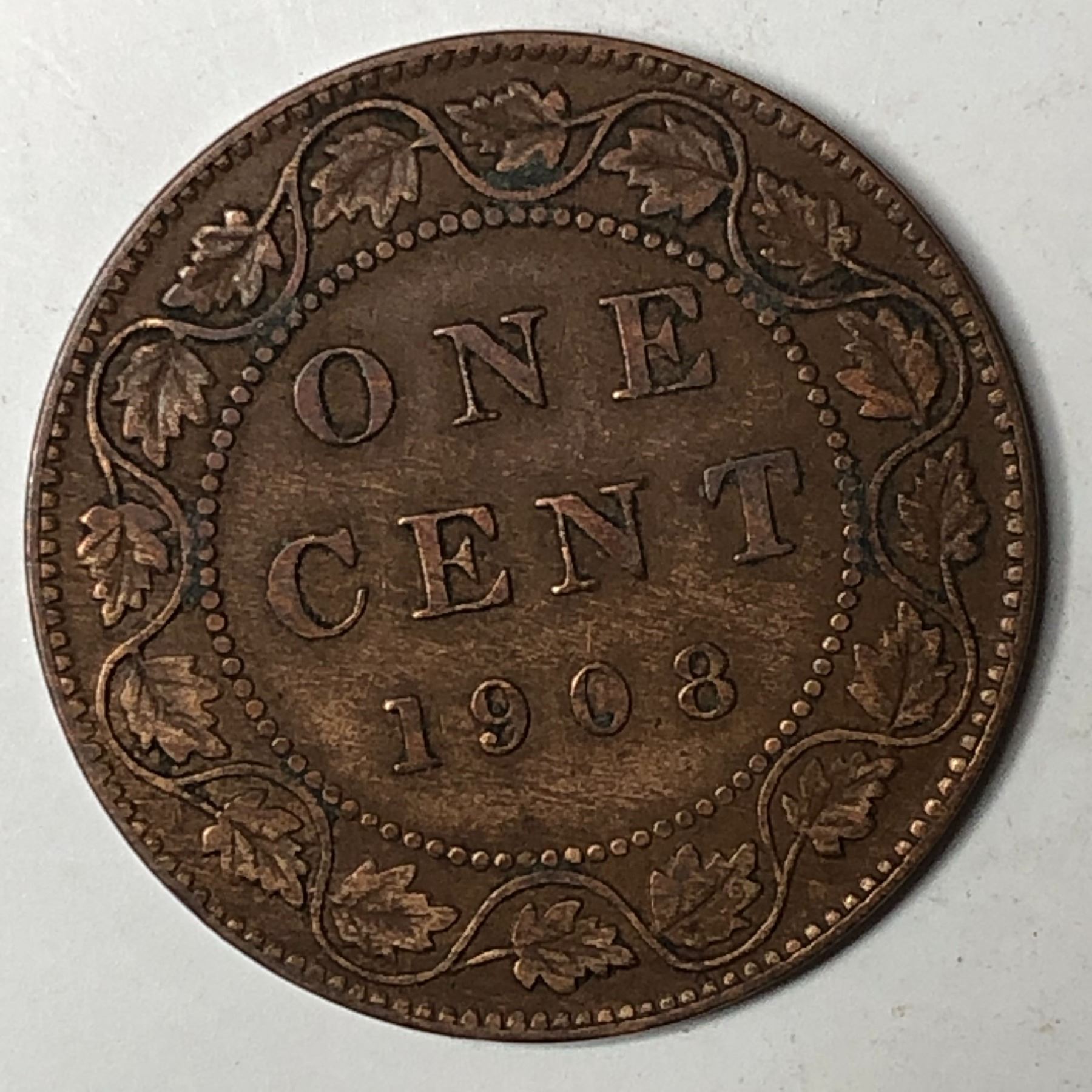 Canadian Large Cent 1908 VF+