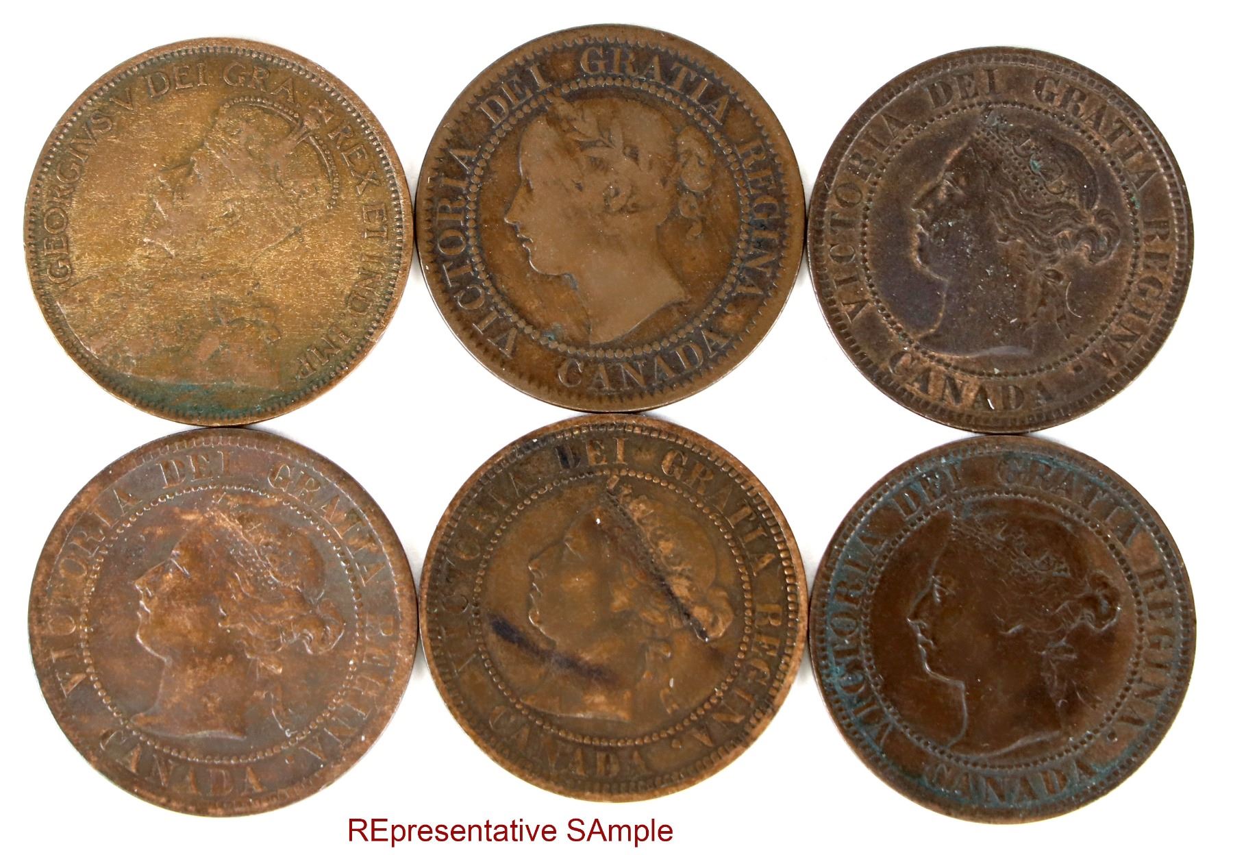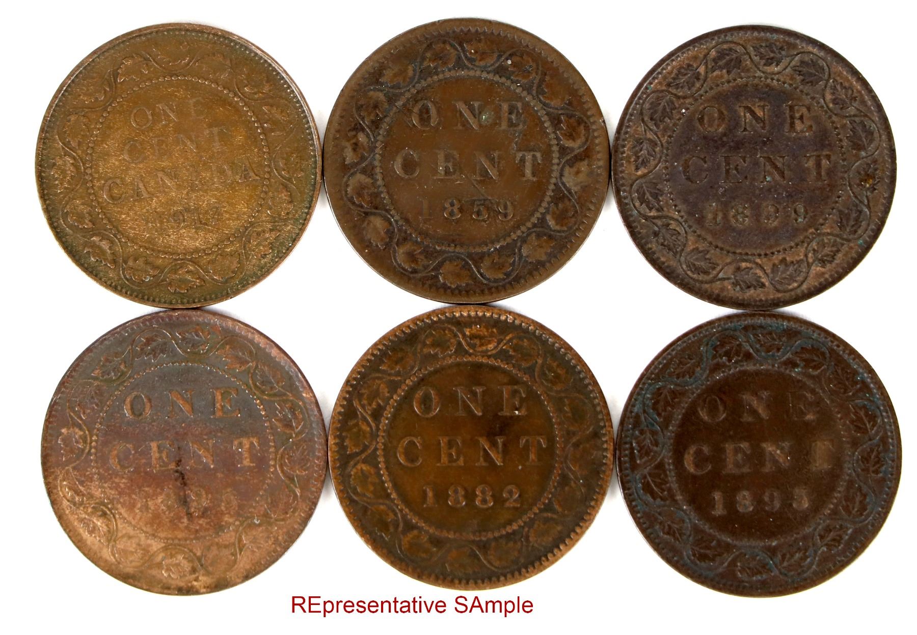 twelve Canadian Large Cents