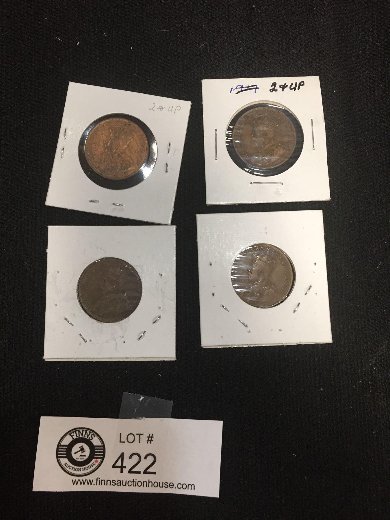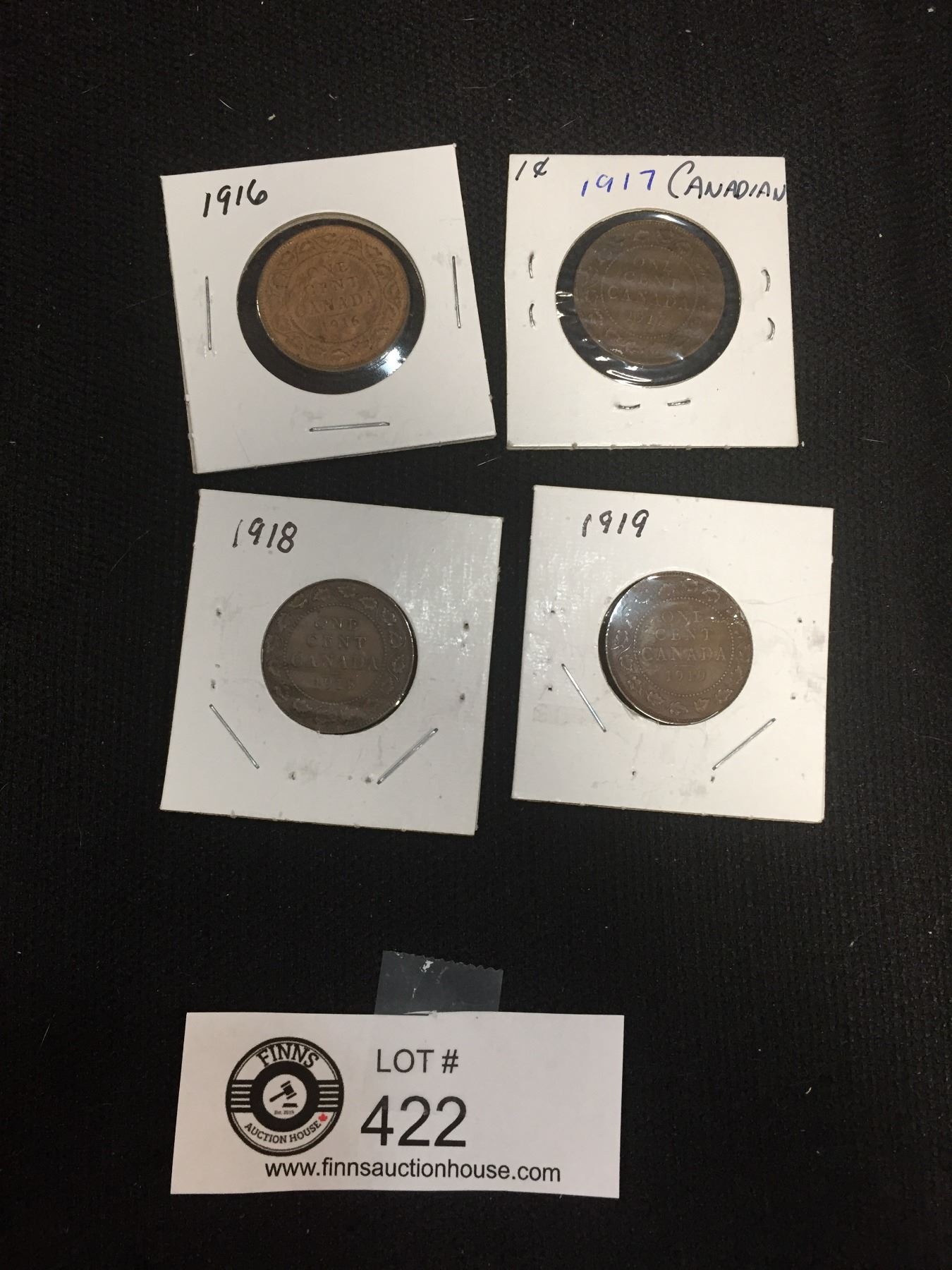 Canadian Large Pennies in Holders. 1916,1917,1918, and 1919