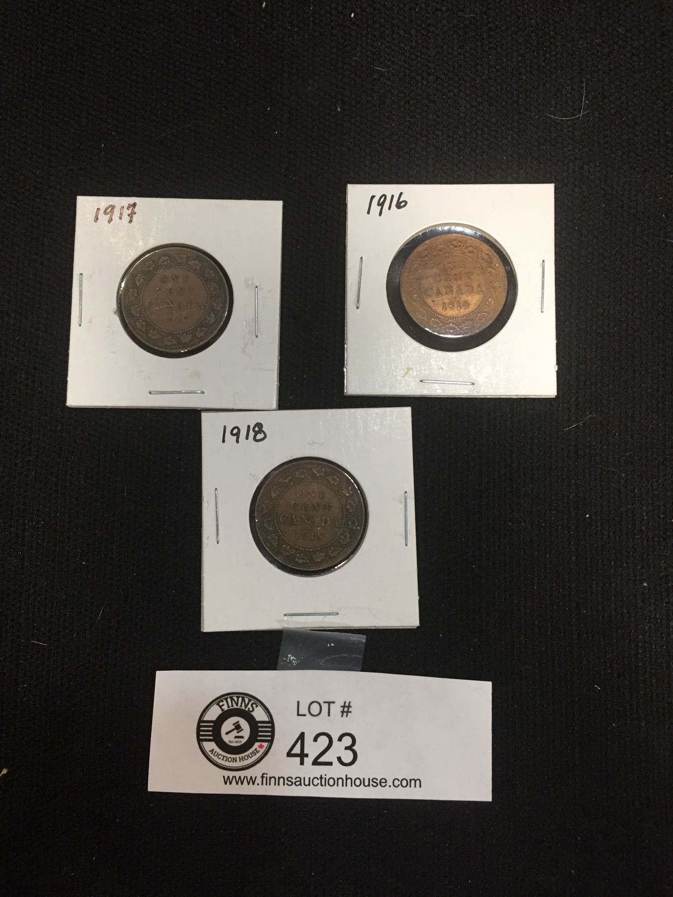 Canadian Large Pennies in Holders. 1916,1917, and 1918