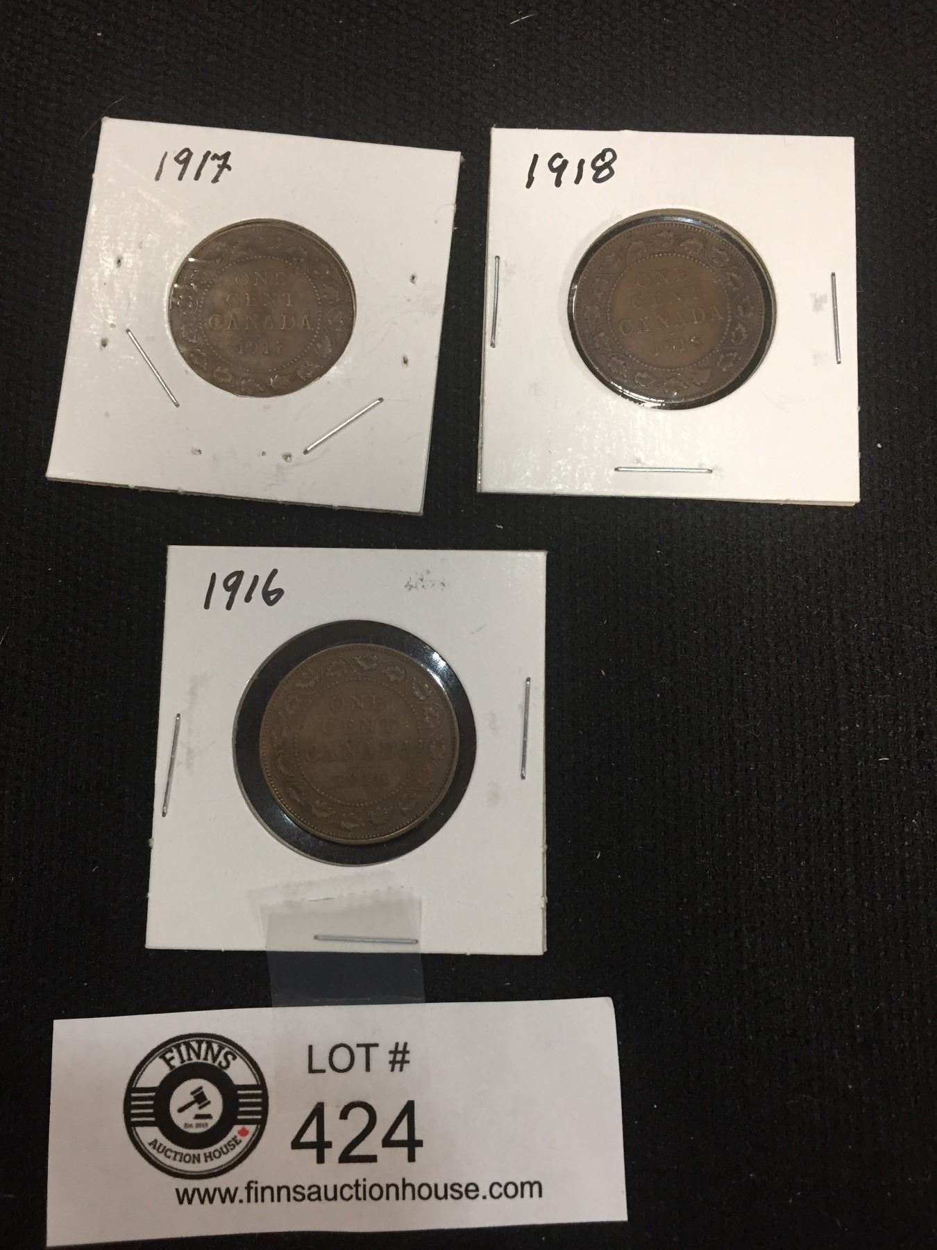 Canadian Large Pennies in Holders. 1916,1917, and 1918
