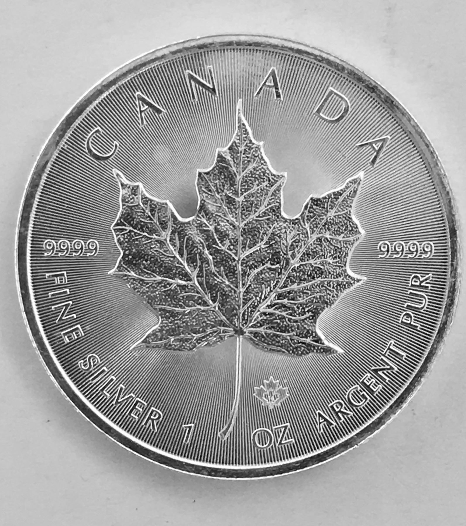 Incised Canadian Maple Leaf 5 Dollar 1 Ounce 999 Silver Coin