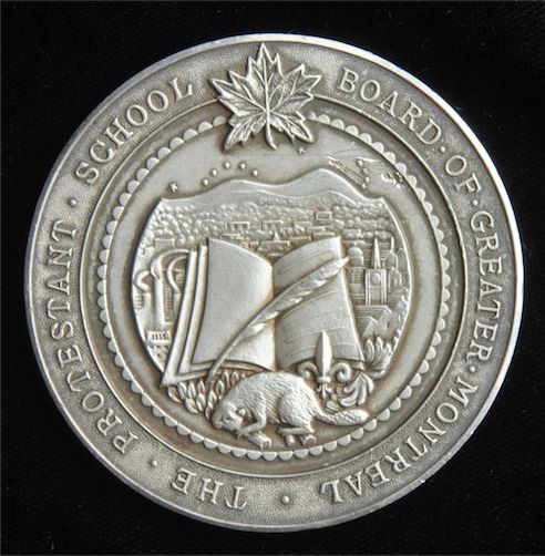 The Protestant School Board of Greater Montreal - AR 56mm (81gr). Engraved "Mildred/Moroff/Mount Royal/High School/June 1962". A few heavy scratches on obv. EF.