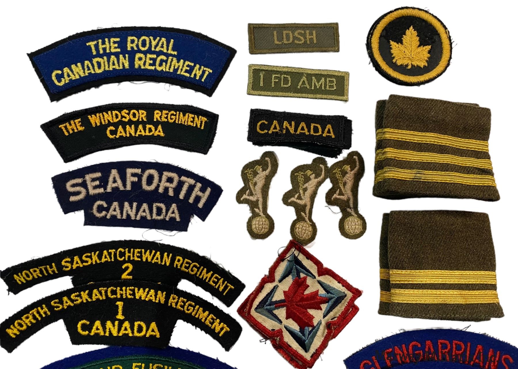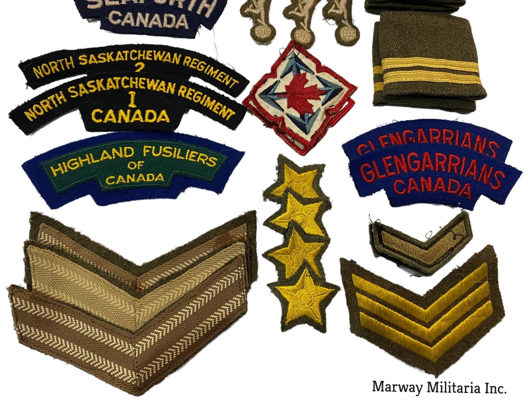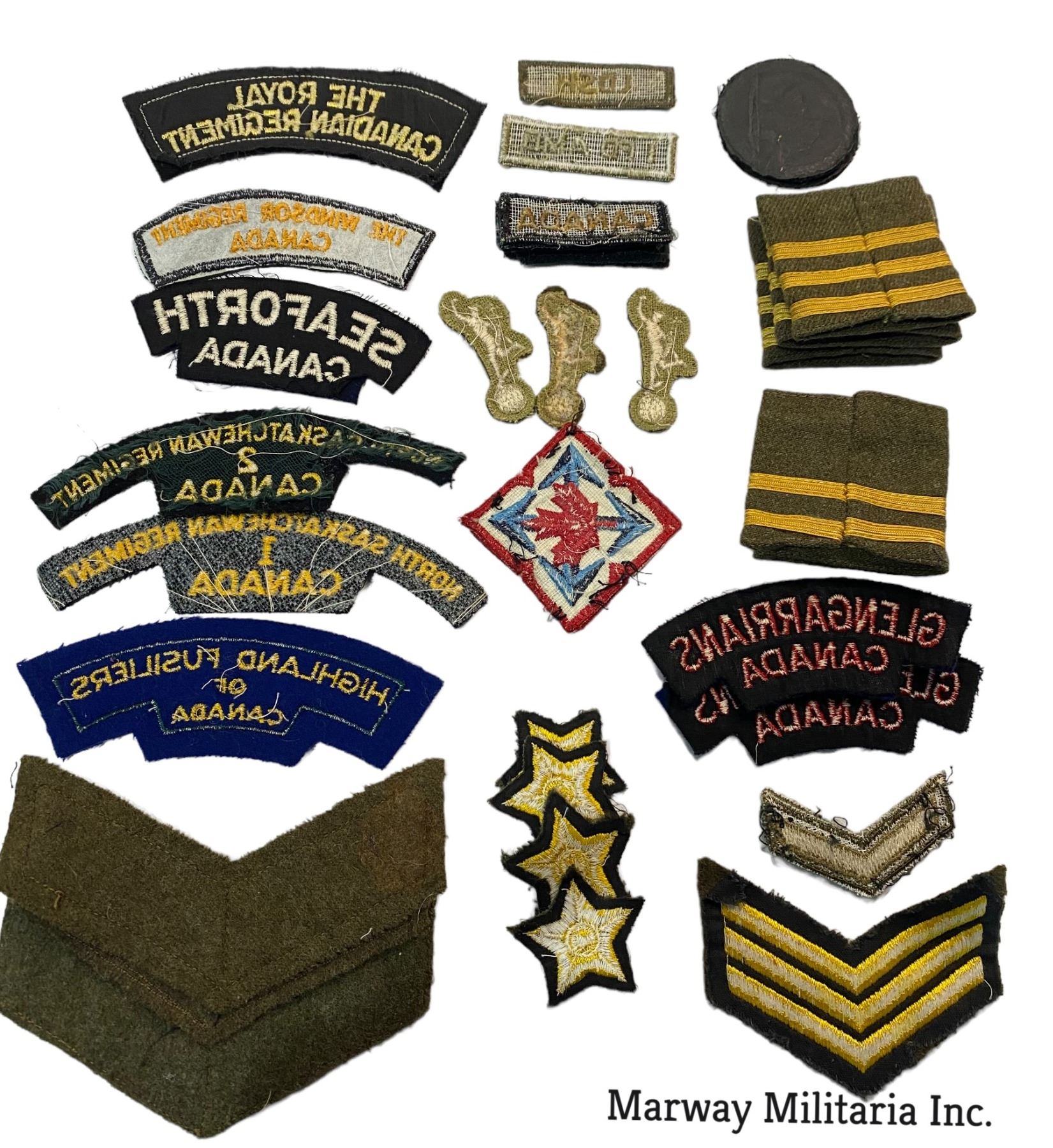 Lot Includes, 38 Various Patches & More. Highland |Light Infantry, Seaforth Highlanders, Numerous Combat tabs, rank insignia and more