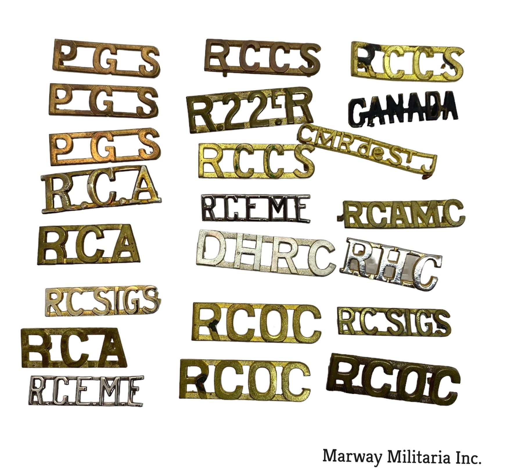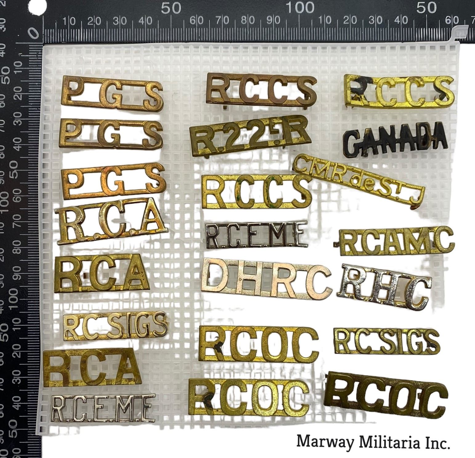 Lot of 22 Metal Titles. Includes Royal Canadian Artillery, RCEME, Signals, Ordnance Corps and more