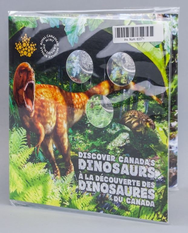 Set of Canadian coins. Featuring dinosaurs. Issued by the Canadian Mint in 2019. Accompanied with booklet. 15 x 15 cm. 65 grams.