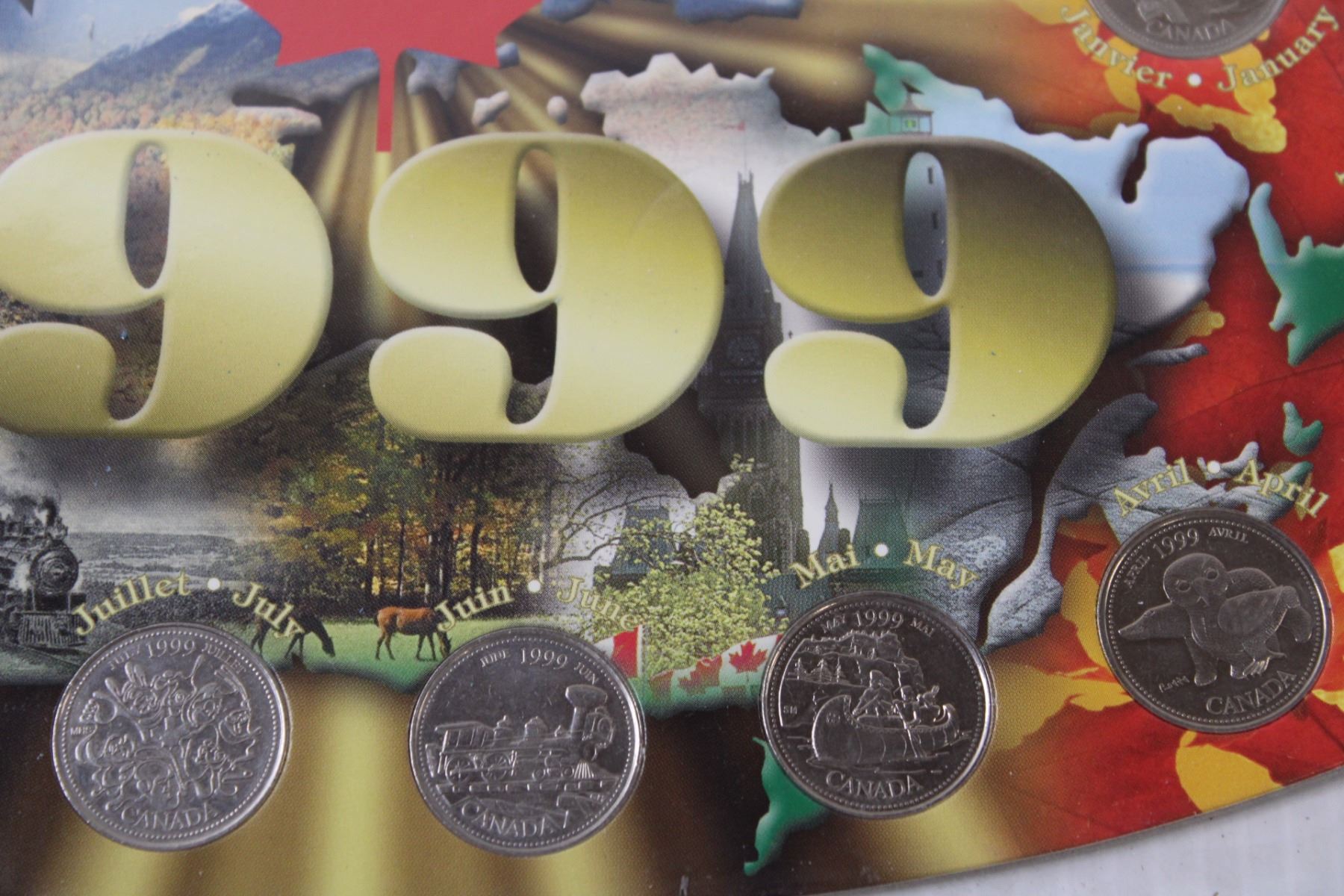 Canadian Mint Twenty Five Cent Coin Collection - 1999 Monthly Edition