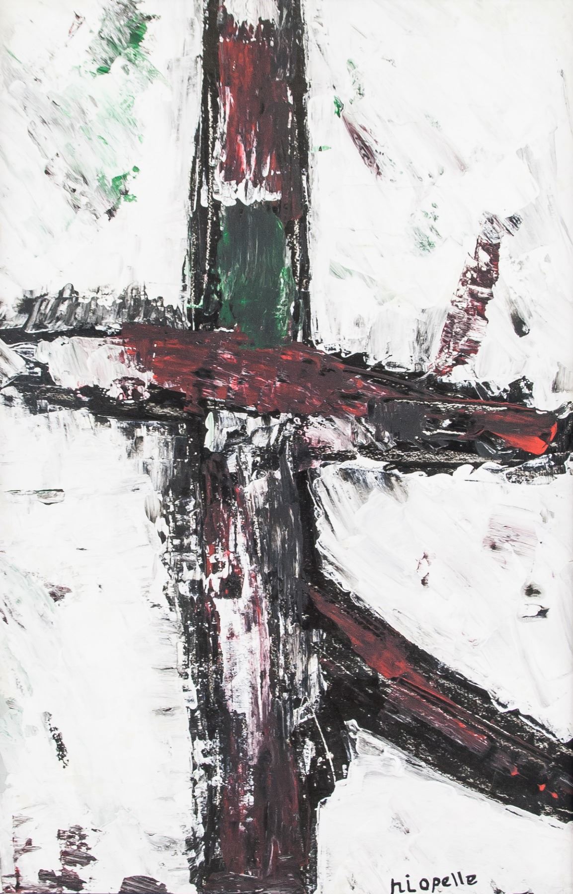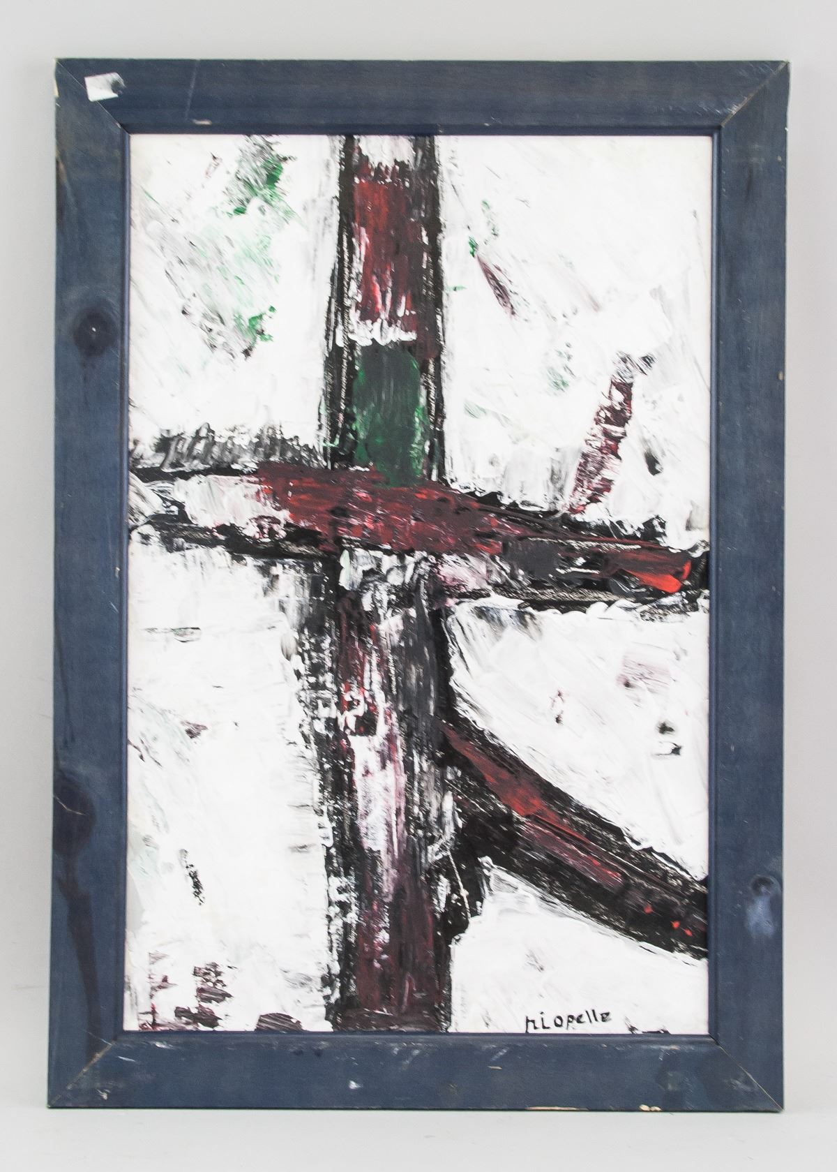 Oil on canvas, framed. Featuring an abstract modernist composition. Signed illegibly on the lower right corner. 49.5 x 33 cm (19.5 x 13.0 inches). Framed size: 56 x 39.5 cm (22.0 x 15.6 inches). PROVENANCE: Southern Ontario estate