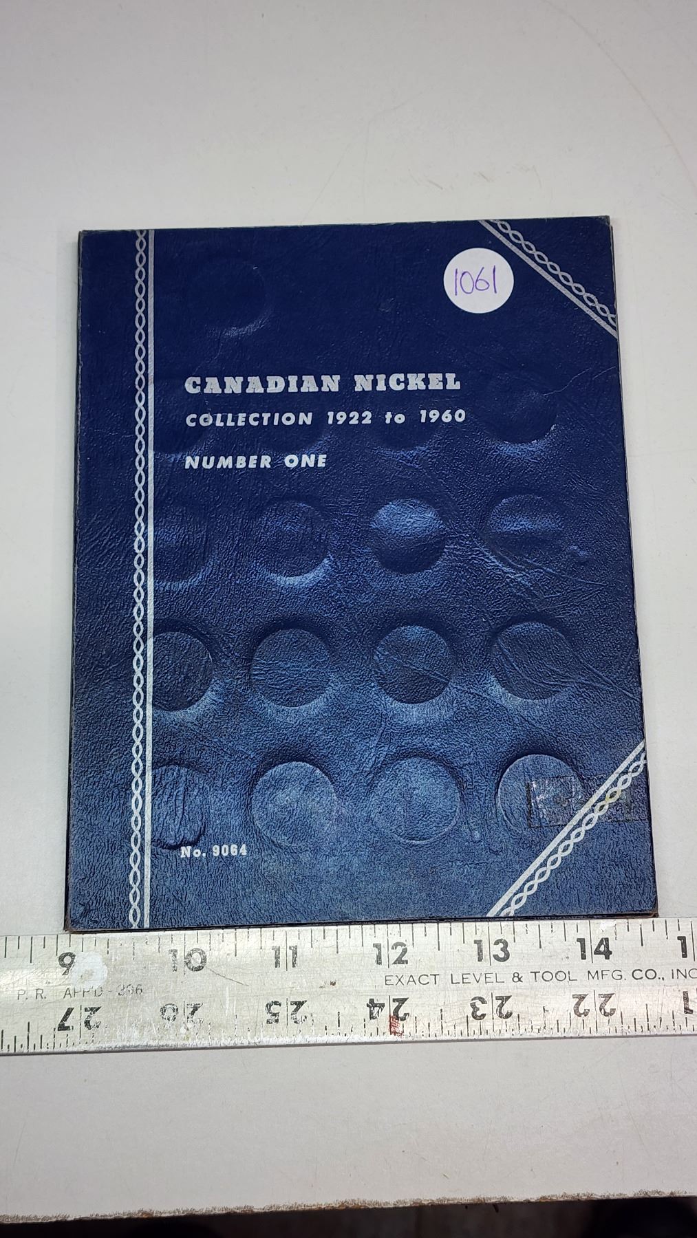 Canadian Nickel Collection 1922 – 1960. Nearly complete. Missing only Key Dates 1925 & 1926 Far 6. Coins grade VG to EF. Housed in a blue Whitman folder.