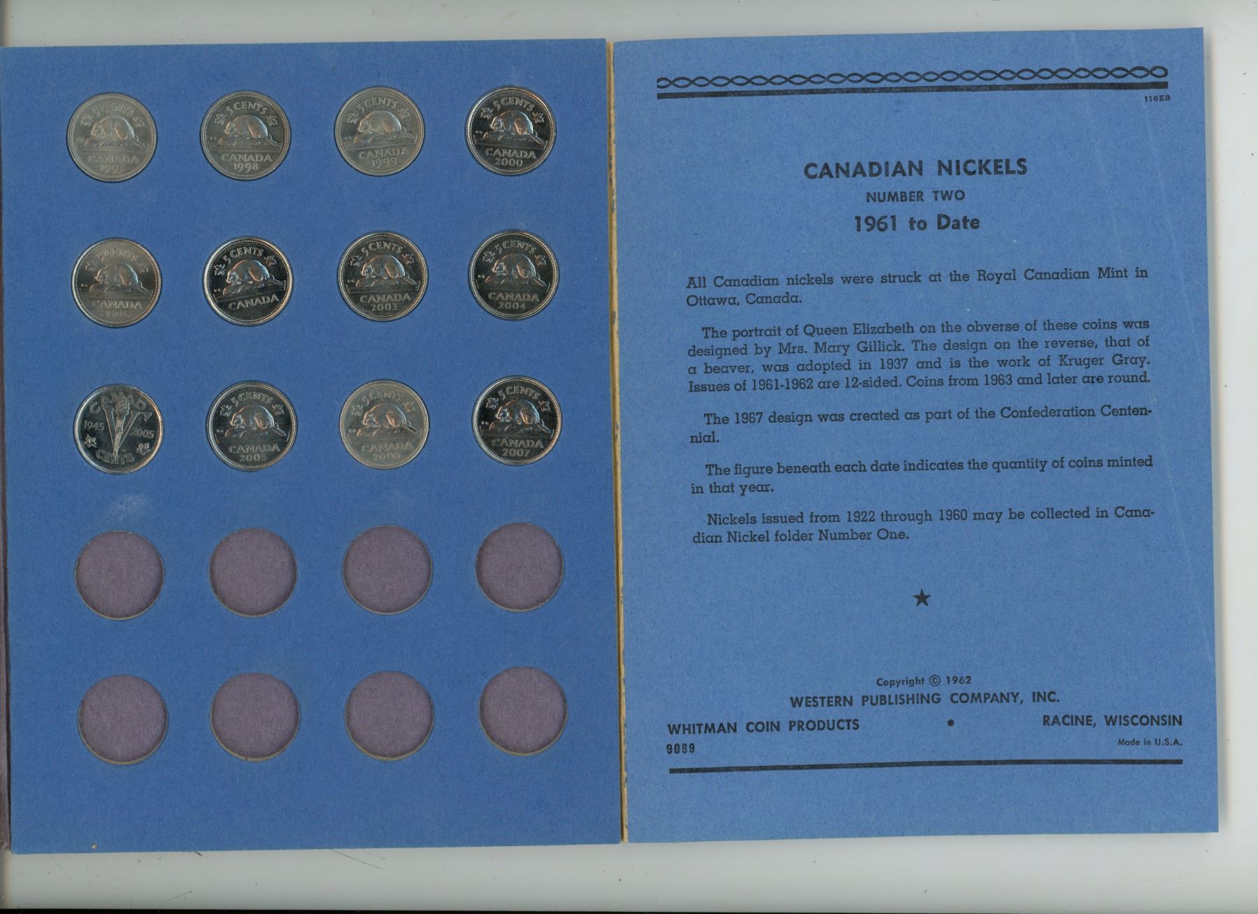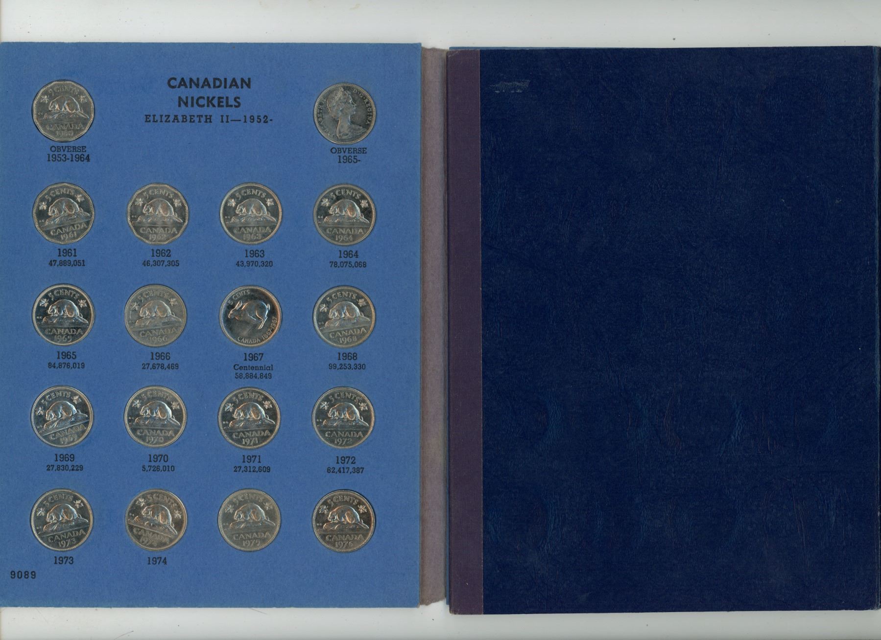 Canadian Nickel Collection. 50 Nickels dating from 1961 to 2007. Housed in a blue Whitman folder.