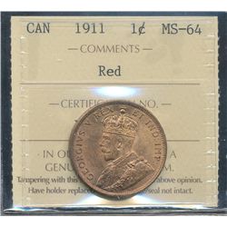 1911 1¢ ICCS MS64RD. 90% red with lustre.