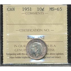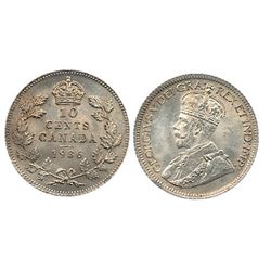 1936 10¢ ICCS MS65. Light gold over strong lustre.