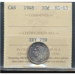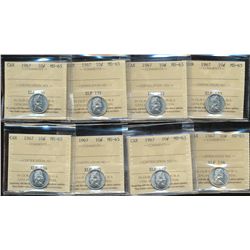 1946 10¢ ICCS MS64. Lot of 5 coins all white.