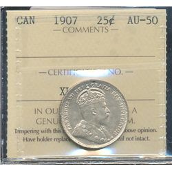 1907 25¢ ICCS MS63. Nice lustre through gold tones.