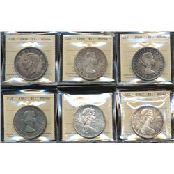 1939 $1, 1958, 1960, 1962, 1966 & 1967 ICCS MS64. Lot of 6 coins.