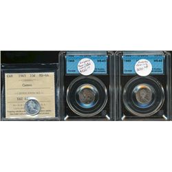 1965 10¢ CCCS MS63, MS65 & ICCS MS64 Cameo. Lot of 3 coins two of which show gem tones.