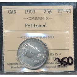 1903 25¢ ICCS EF40.  Designated as polished.457 - 1903 25¢ ICCS EF40. Designated as polished.