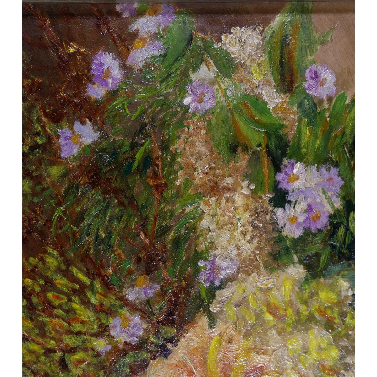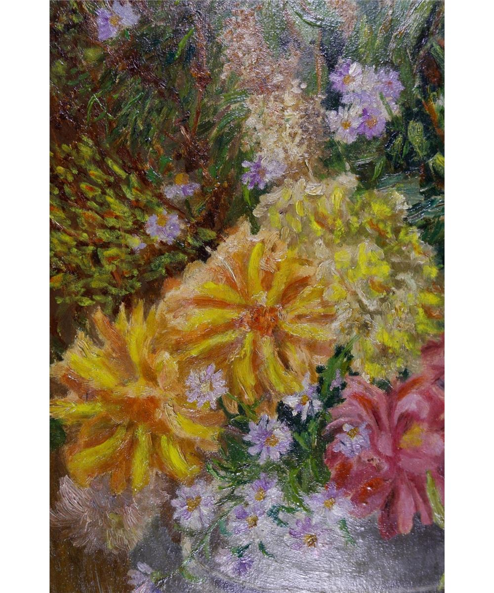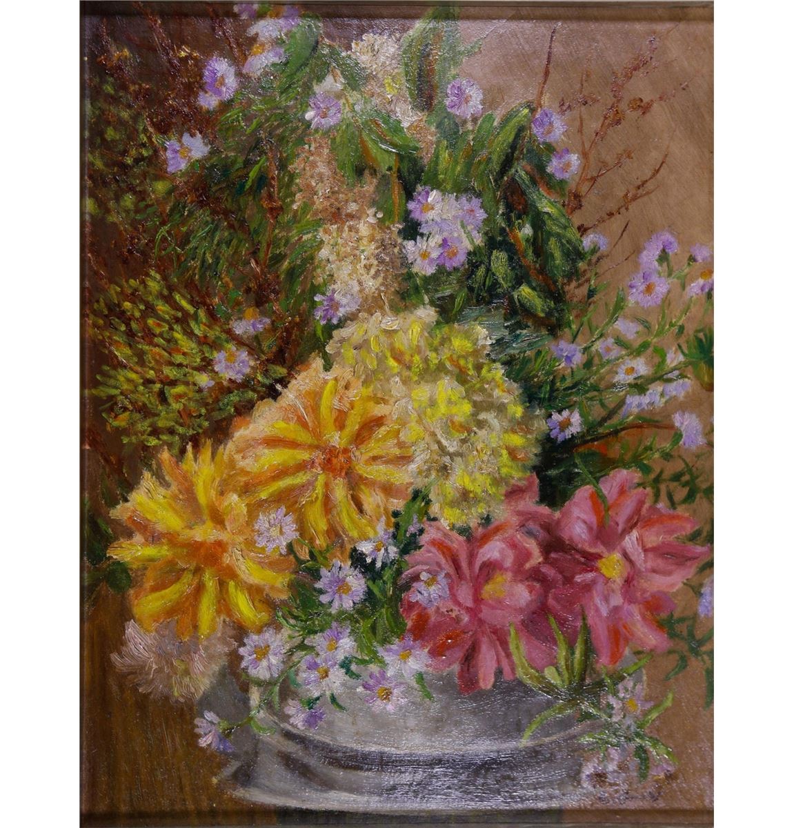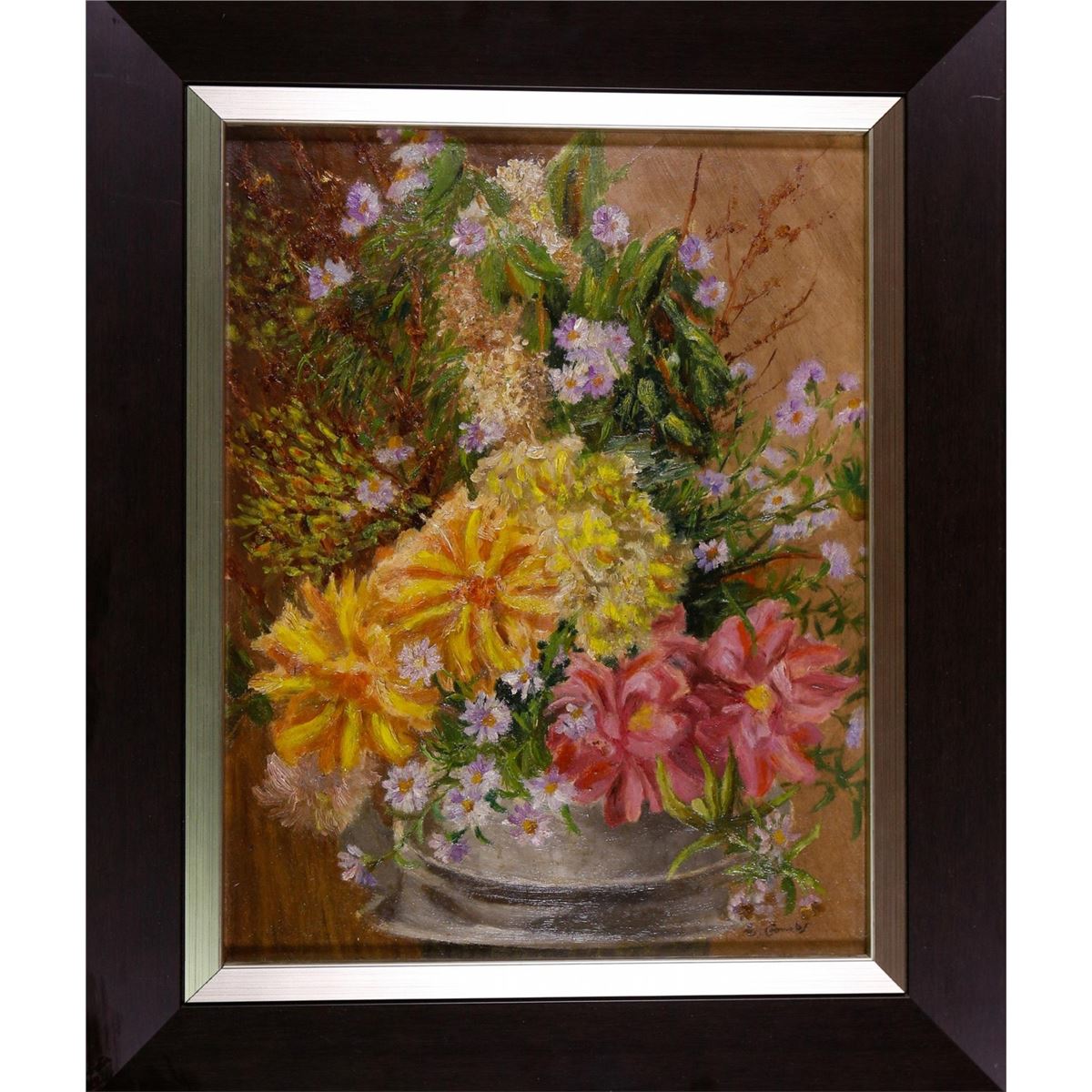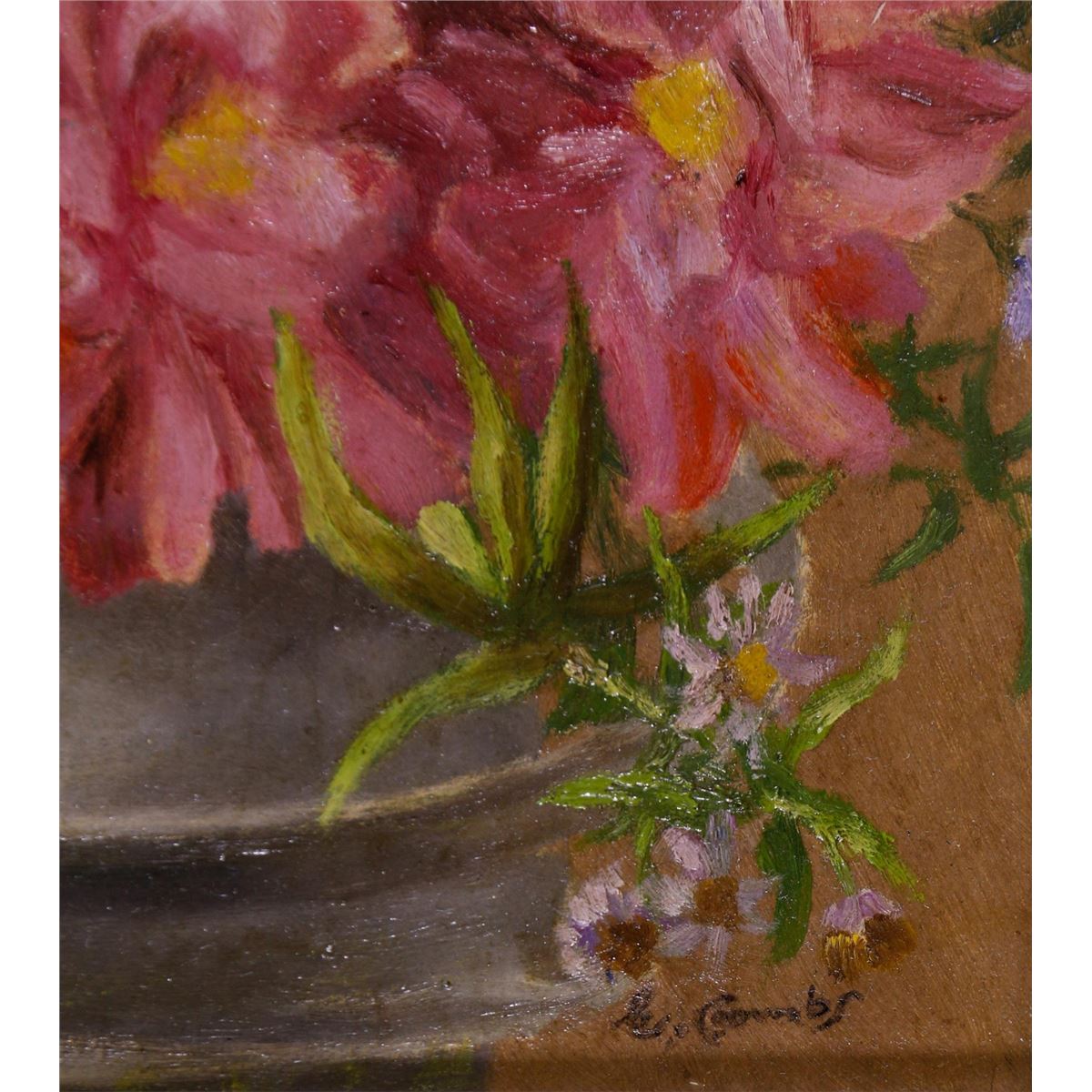 Flowers; oil on board; framed; signed by Canadian artist L. Combs; 44 cm x 34 cm without frame