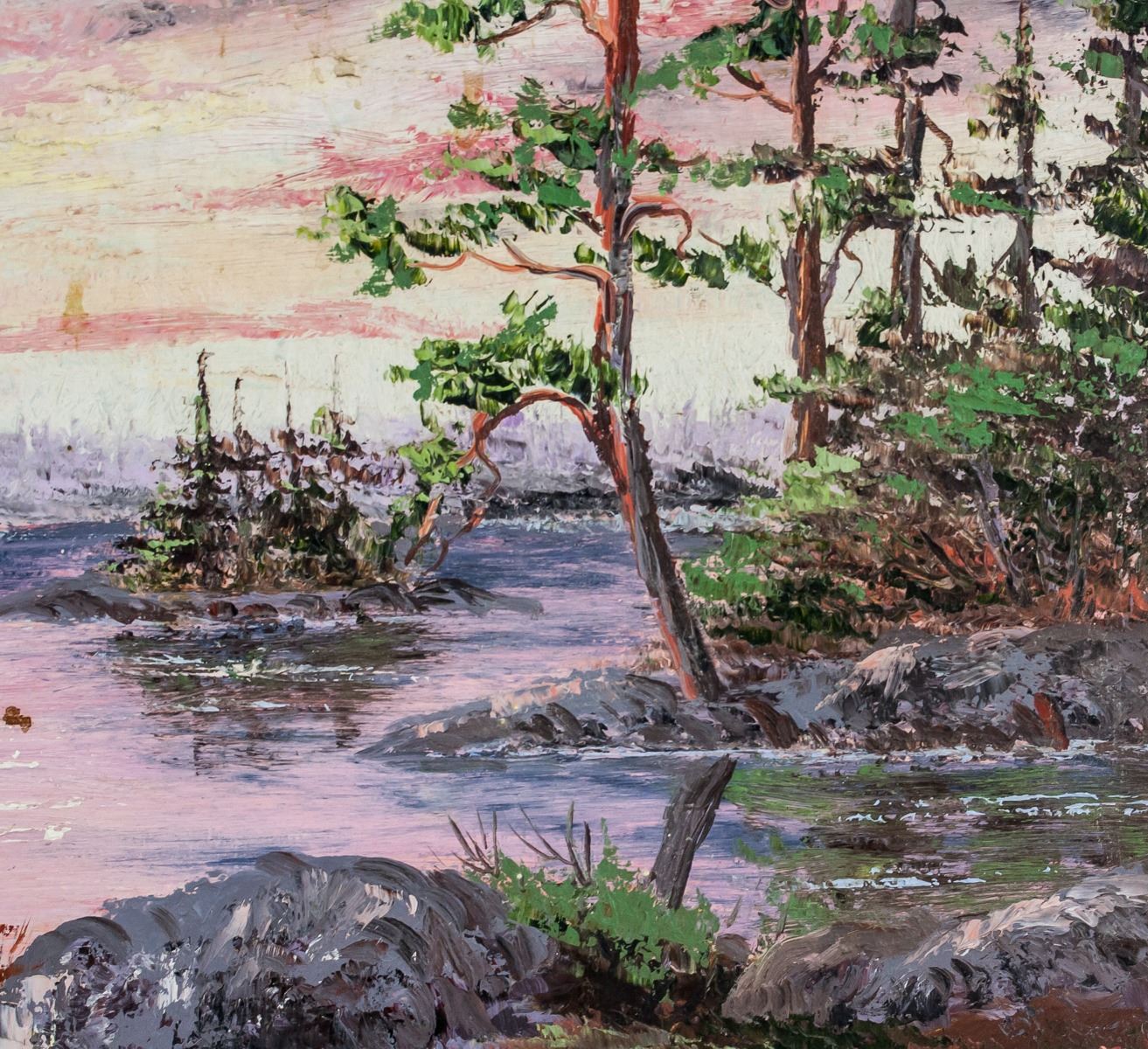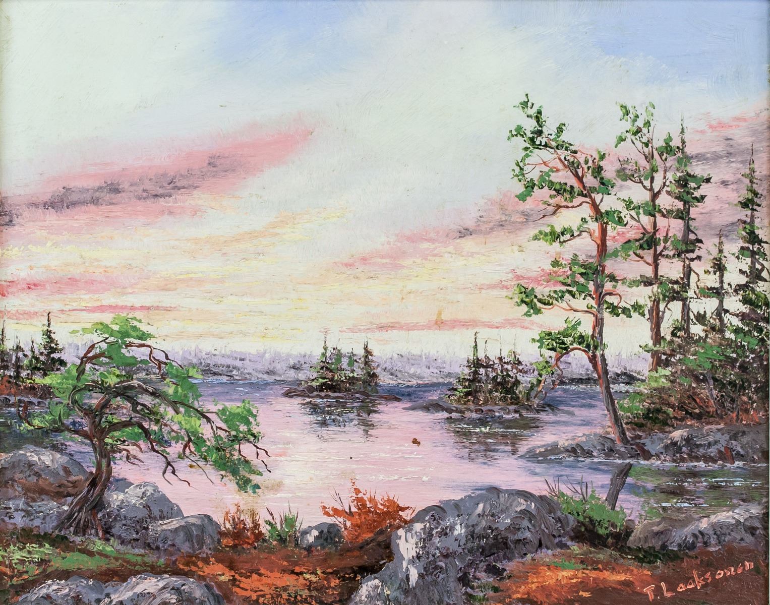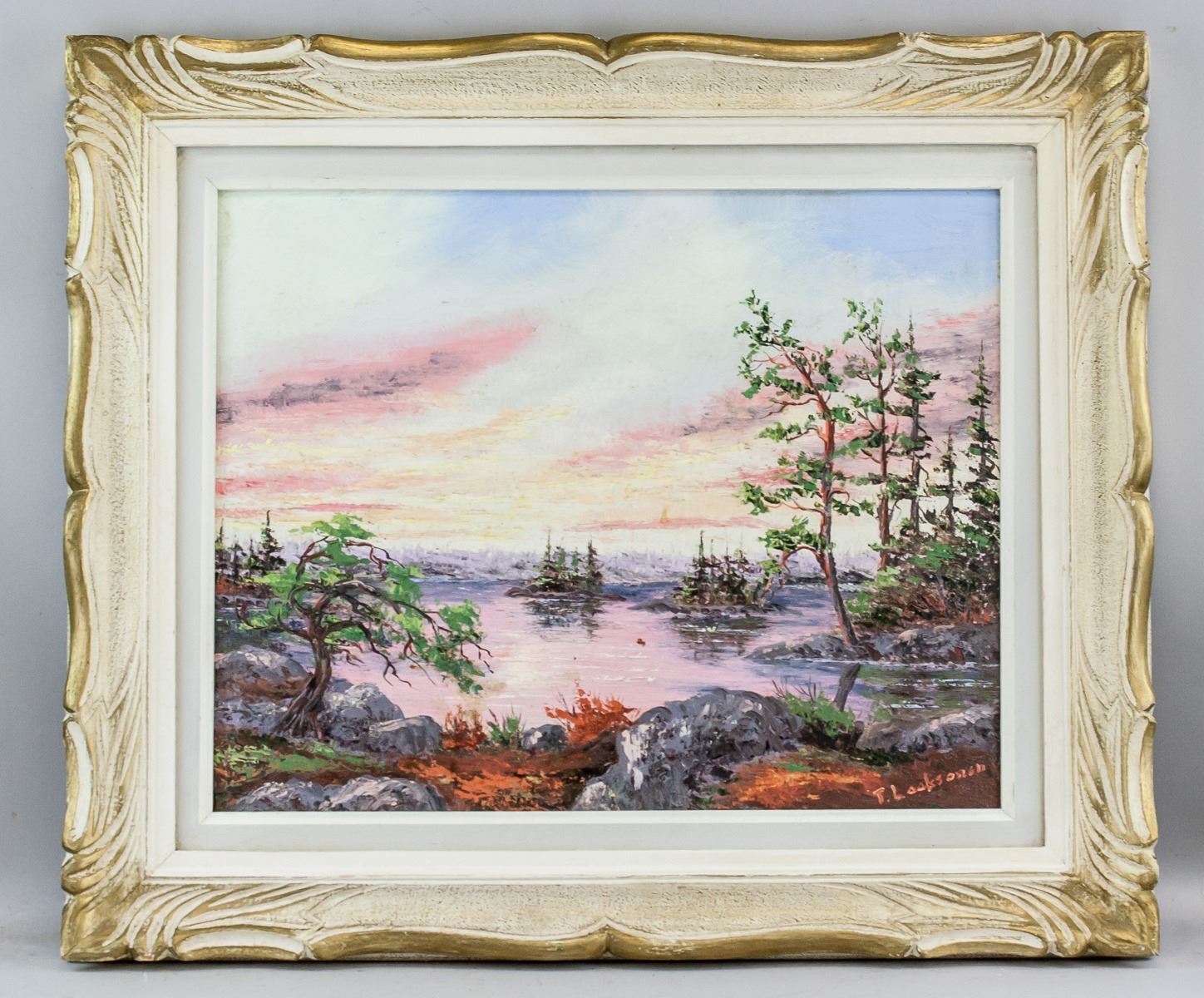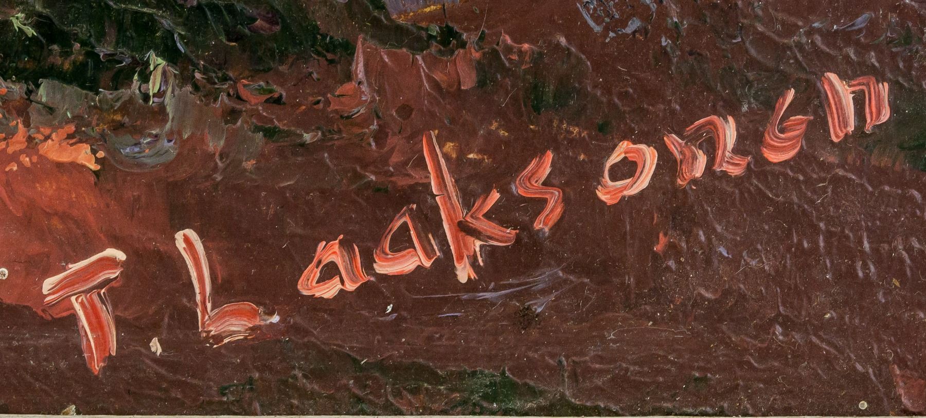 Oil on Board, framed. Featuring a river landscape scene. Singed " T. Laaksonen" by the artist on the lower right corner. 40 x 48 cm (15.7 x 18.9 inches)