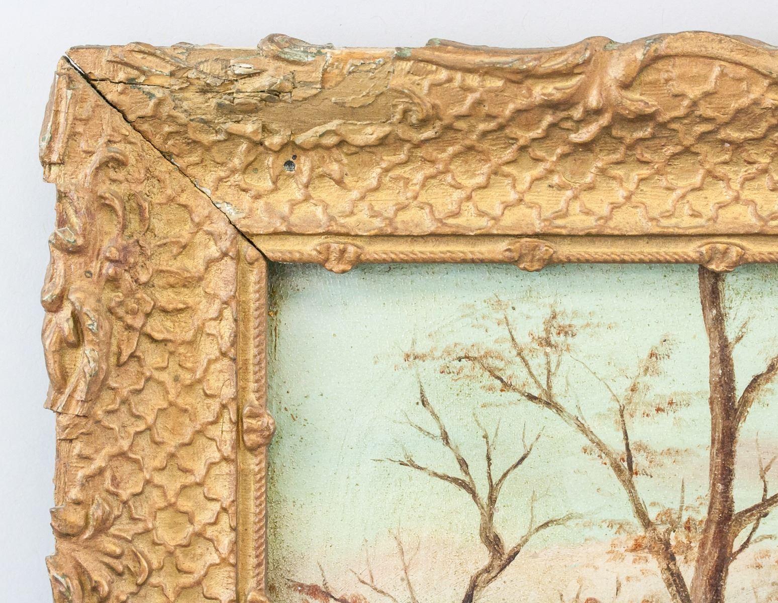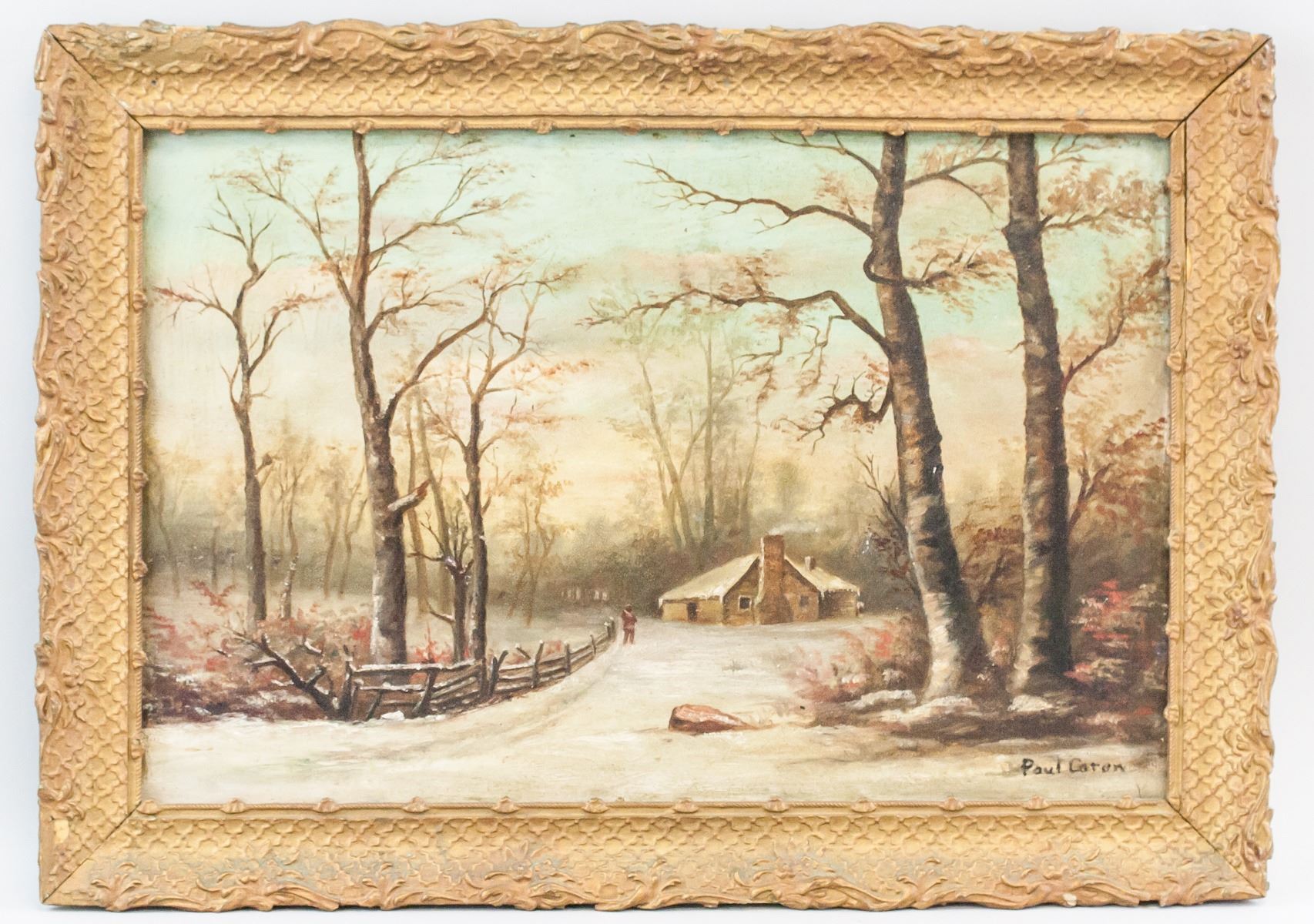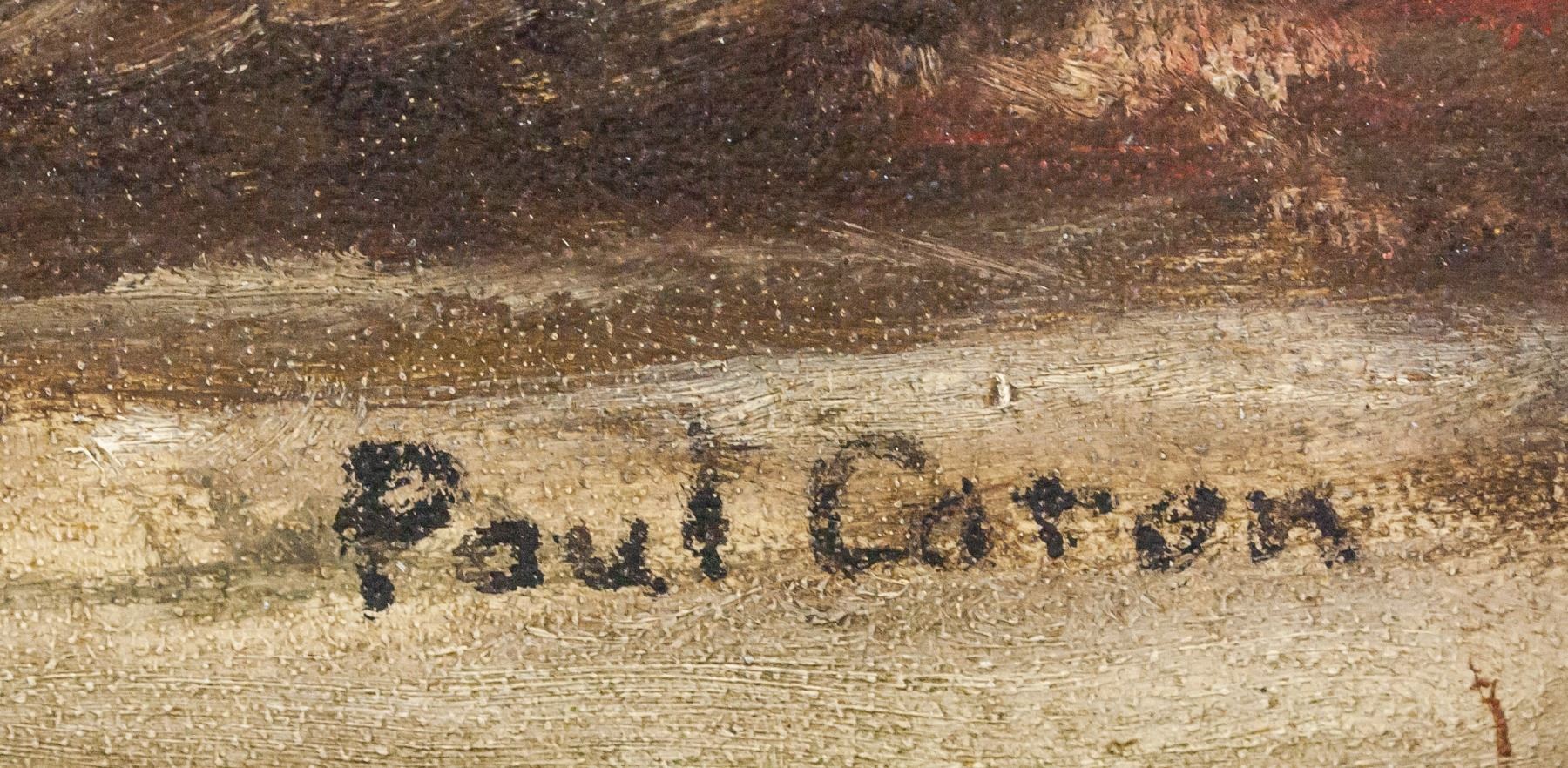 Oil on canvas, framed. Featuring landscape scene with a small house in the background. Signed "Paul Caron" in the bottom right corner. 30 x 44 cm (12 x 17 in), Frame: 40 x 53 cm (19 x 20.5 in).