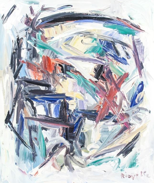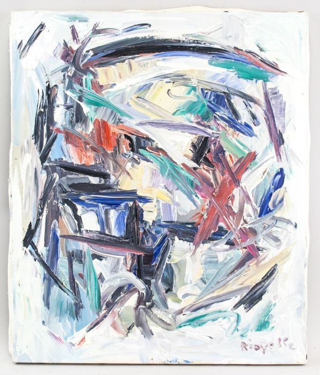 Oil on canvas. Featuring abstract composition. Signed "Riopelle" to the bottom right corner. 47 X 40 cm (18.5 X 15.5 inches).
