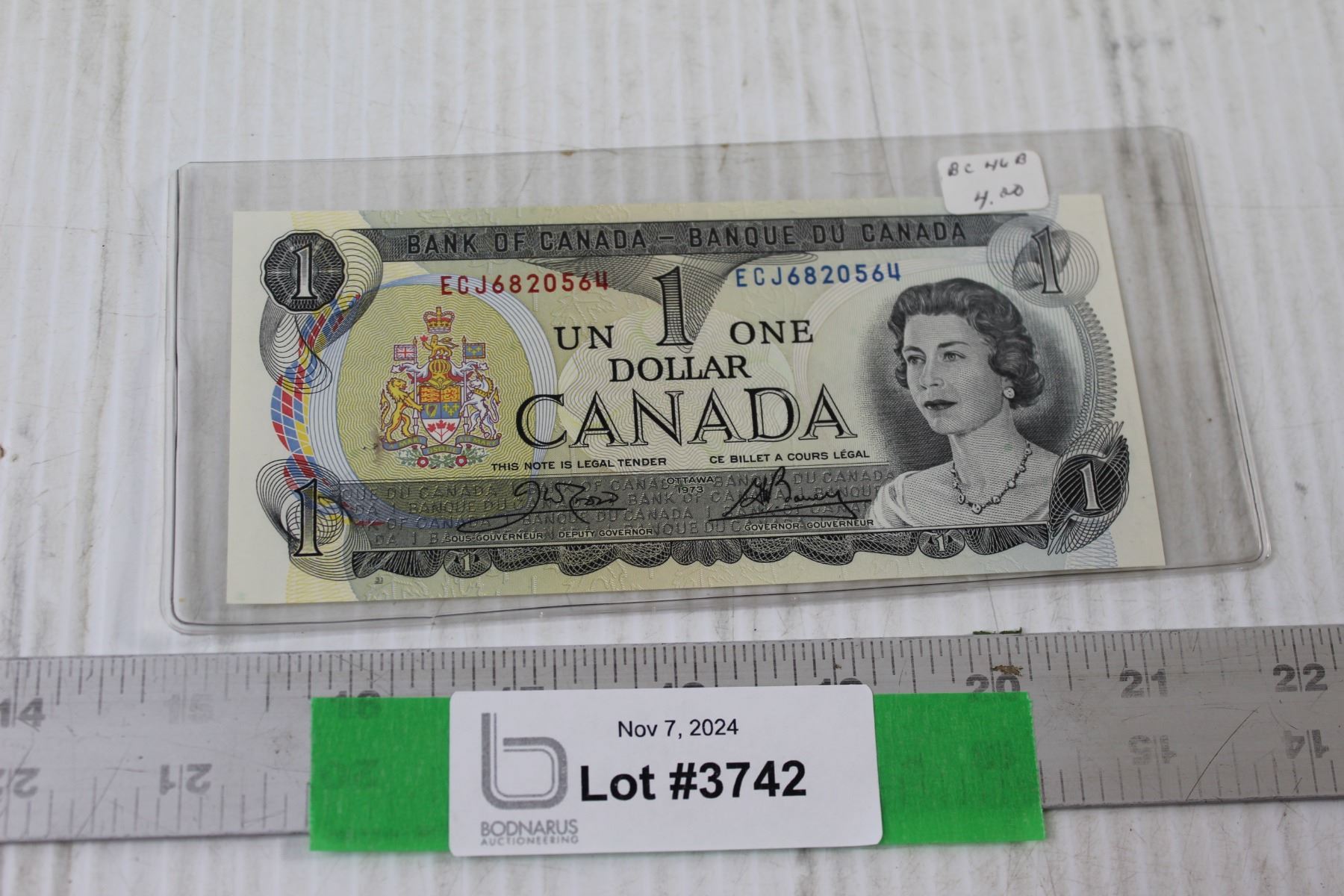 Canadian One Dollar Bill Ottawa 1973