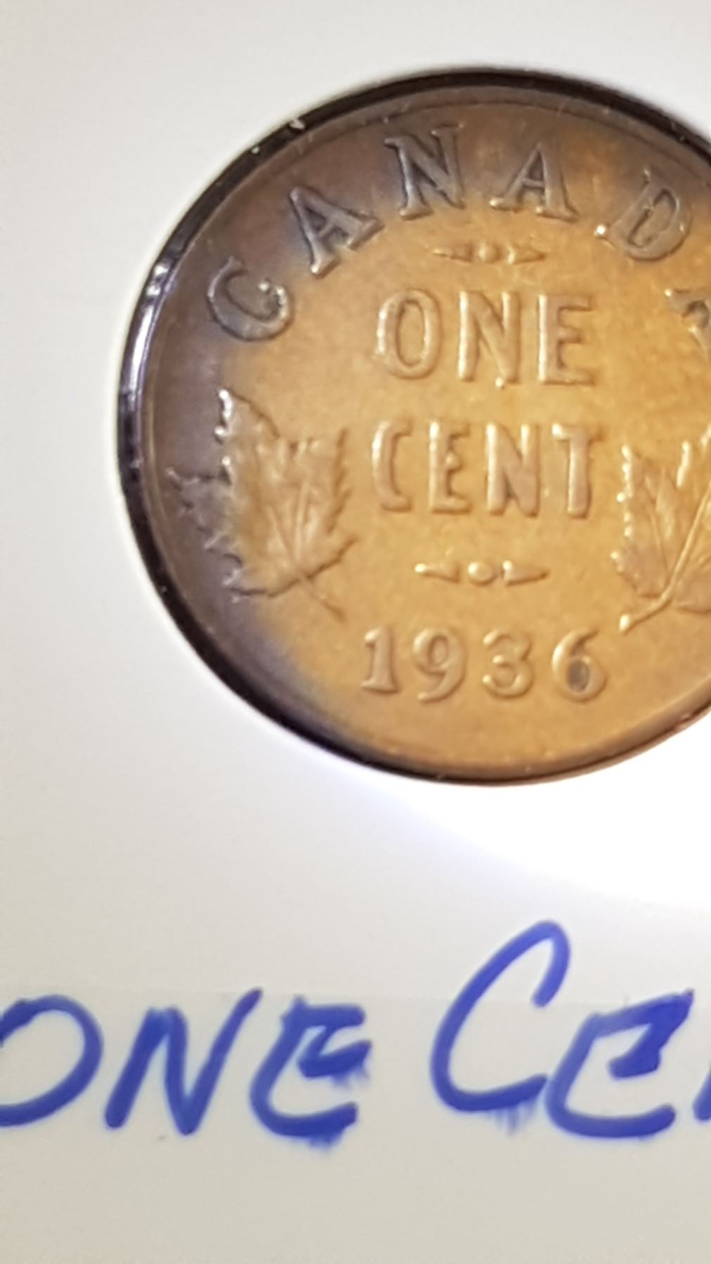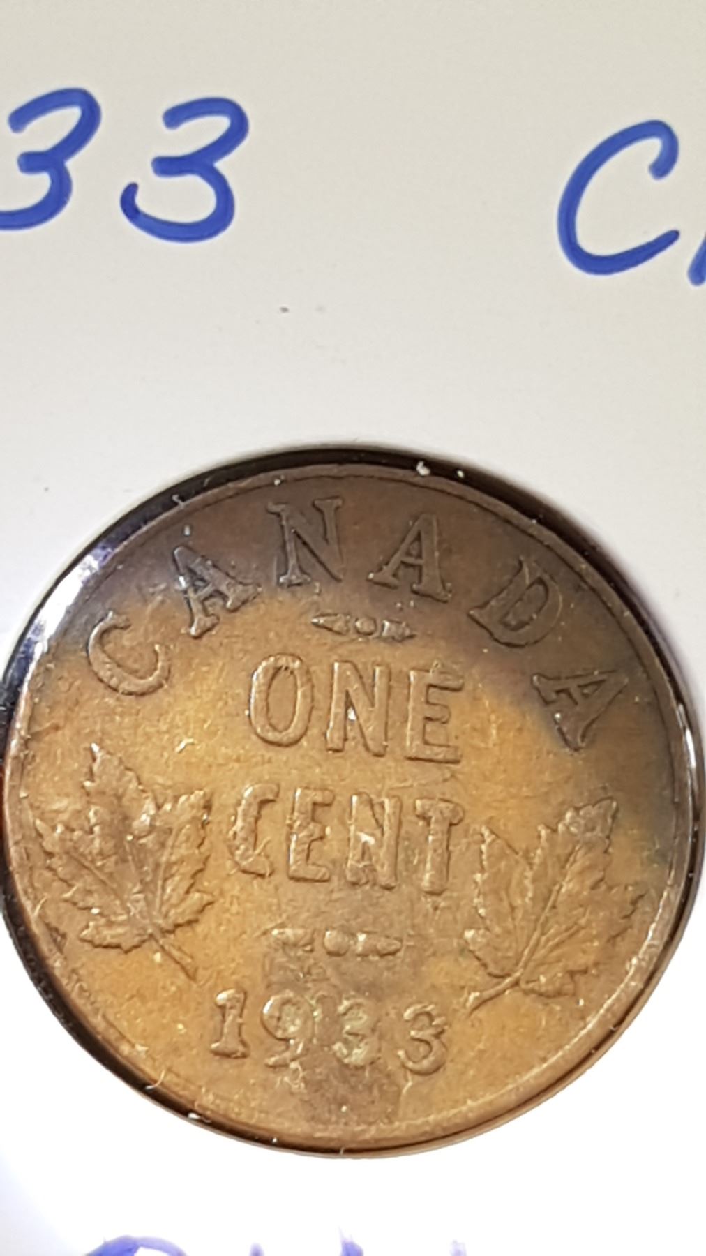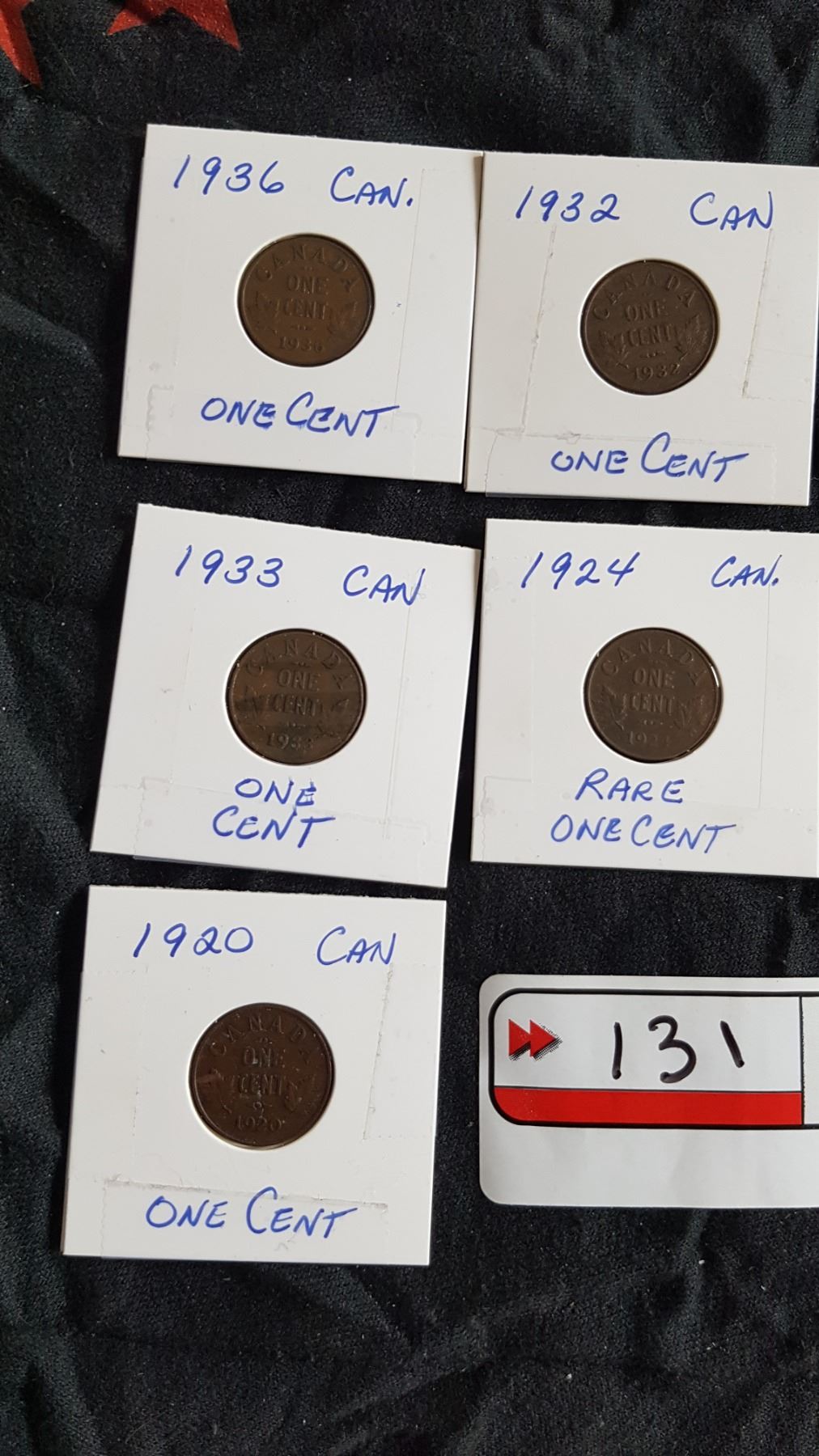 5 Canadian pennies 1936, 32, 33,24, 20